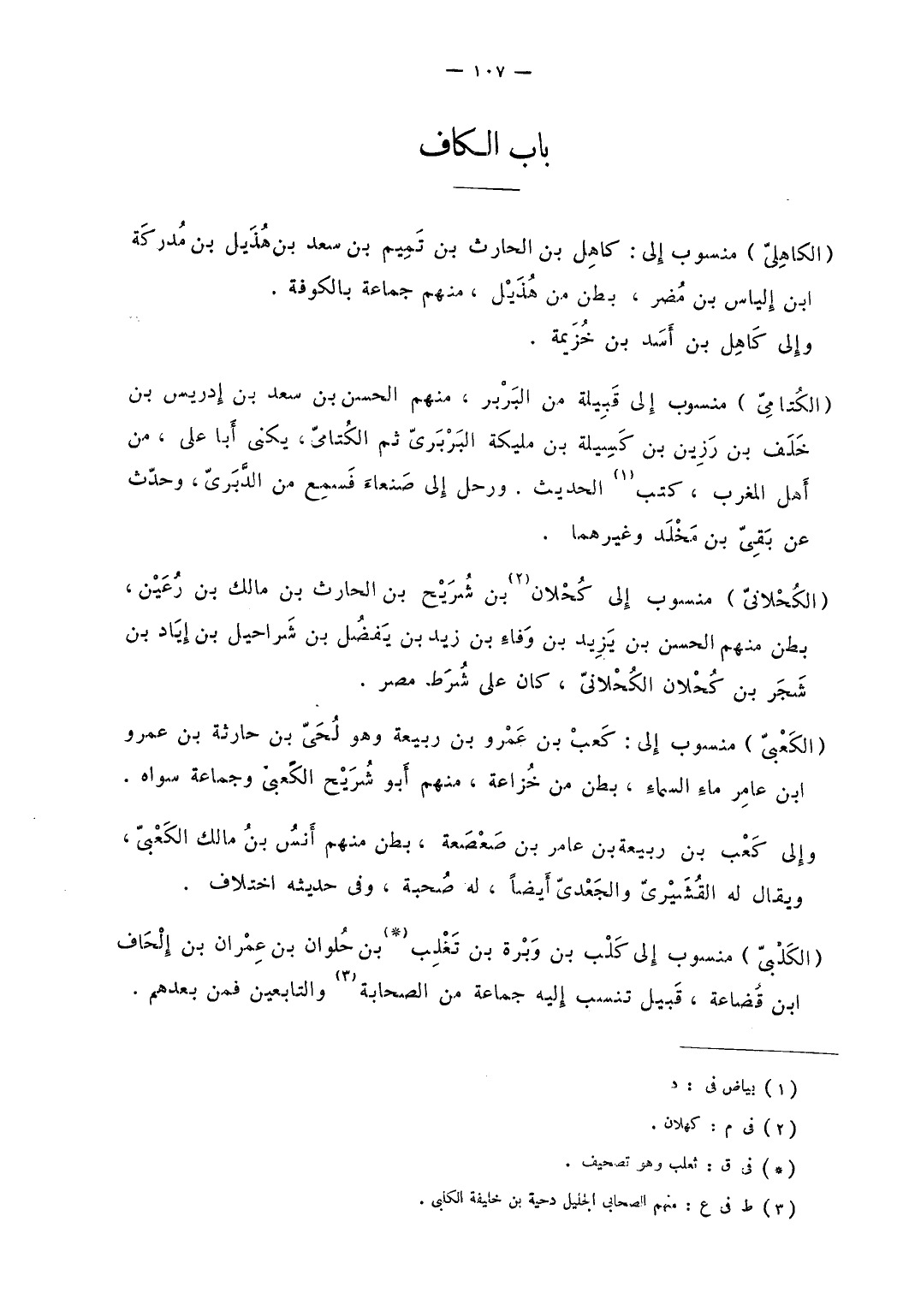 (الكلبى) منسوب الى كلب بن وبرة بن تغلب (5) بن حلوان بن عمران بن إلحاف ابن قضاعه قبيل تنسب اليه جماعة من الصحابة (3) والتابعين فمن بعدهم.
