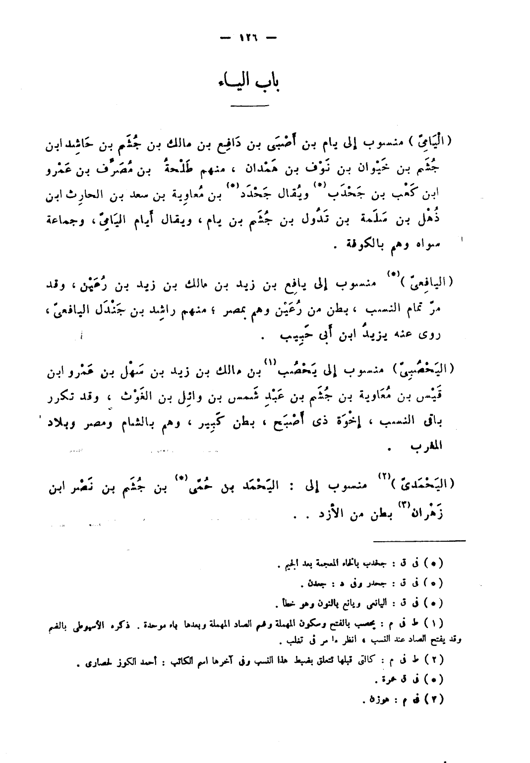 الْيَامِي منسوب إلى يام بن أَصْبَى بن دَافع بن مالك بن جُشم بن حاشد بن جُشم ابن خيوان بن نوف بن همدان، منهم طلحة بن مُصَرِّف بن عمروَ بن كعبن بن جحدب ويقال جحده بن معاوية بن سعد بن الحارث بن ذُهل بن سلمة بن تدول بن جُشم بن يام ويقال أيام اليَامِي، وجماعة سواه وهم بالكوفة.