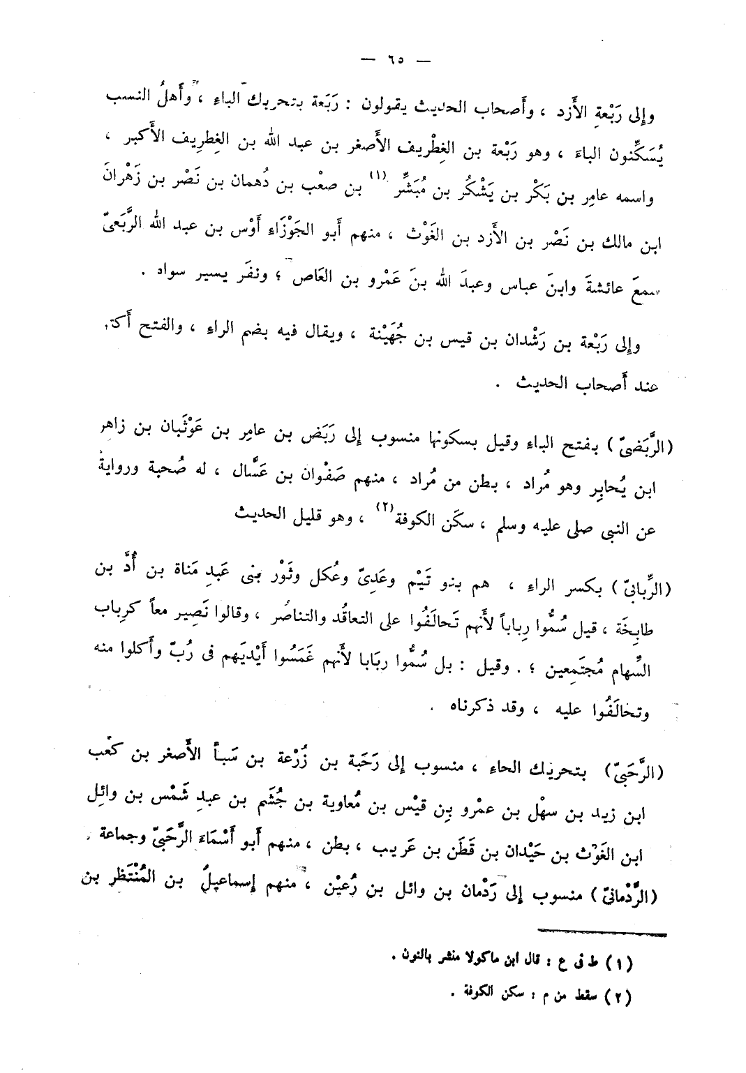 وإلى رَبْعَة الأَزد، وأصحاب الحديث يقولون، رَبعة بتحريك الباء، وأهل النسب يسكنون الباء، وهو ربعة بن الغطريف الأصغر بن عبد الله بن الغطريف الأكبر، واسمه عامر بن بكر بن يَشكر بن مُبَشِّر بن صعب بن دهمان بن نصر بن زهران ابن مالك بن نصر بن الأزد بن الغوث، منهم أبو الجوزاء أوس بن عبد الله الرَّبعي سمع عائشة وابن عباس وعبد الله بن عمرو بن العاص؛ ونفر يسير سواه.