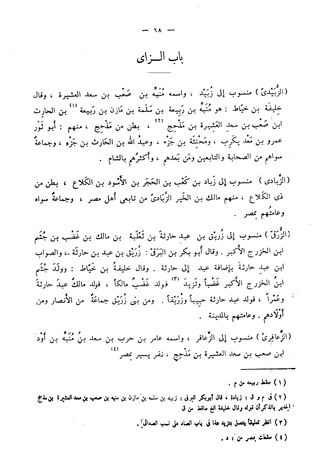 الزُّبيْدي منسوب إلى زبيد، واسمه منبِّه بن صعب بن سعد العشيرة، وقال خليفة ابن الخياط: هو منبه بن ربيعة بن سلمة بن مازن بن ربيعة بن الحارث بن صعب بن سعد العشيرة بن مذحج، بطن بن مذحج، منهم: أبو ثور عمرو بن معد يكرب، ومحرثة بن جزء، وعبد الله بن الحارث بن جزء، وجماعة سواهم من الصحابة والتابعين ومن بعدهم، وأكثرهم بالشام.