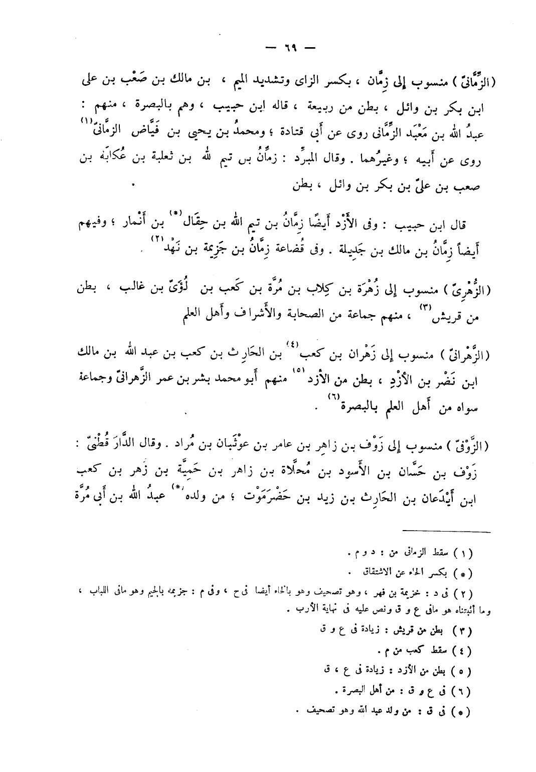 الزِّمَّاني منسوب إلى زمَّان، بكسر الزاي وتشديد الميم، بن مالك بن صعب بن علي ابن بكر بن وائل، بطن بن ربيعة، قاله: ابن حبيب، وهم بالبصرة، منهم: عبد الله بن معبد الزَّمَّاني روى عن أبي قتادة؛ ومحمد بن يحيى بن فَيَّاض الزَّمَّاني روى عن أبيه؛ وغيرهما. وقال المبرد: زمَّانُ بن تيم الله بن ثعلبة بن عُكَابة بن صعب بن علي بن بكر بن وائل بطن.