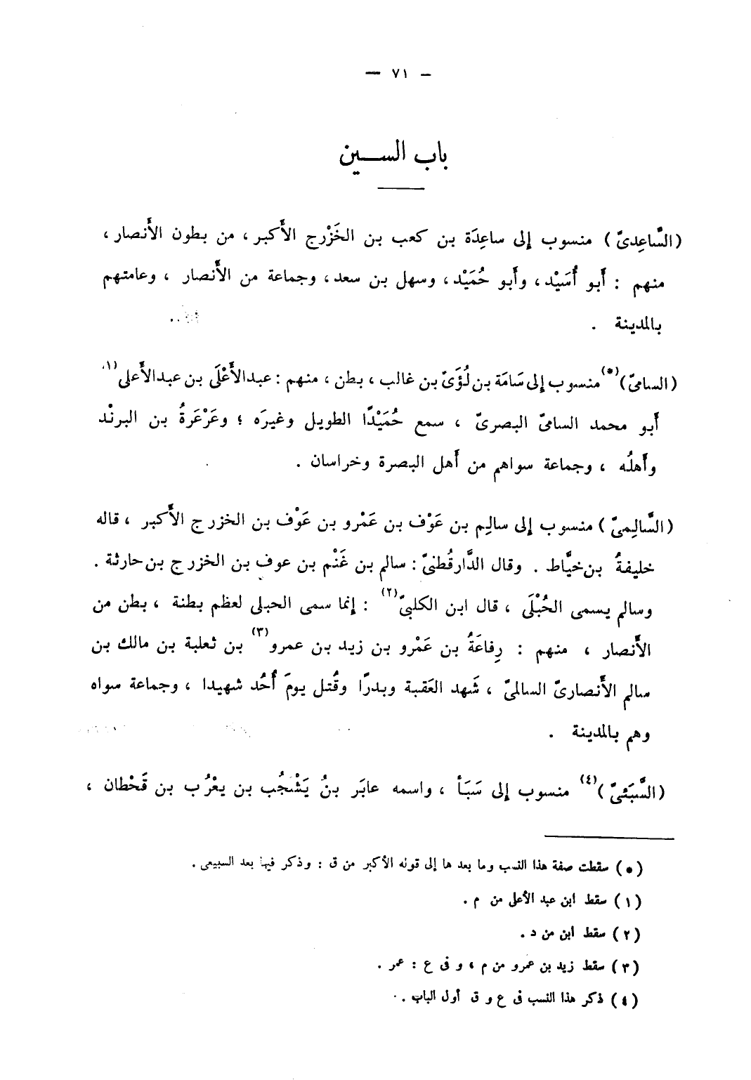 السامي منسوب إلى سَامَة بن لُؤيٍّ بن غالب، بطن منهم، عبد الأعلى بن عبد الأعلى أبو محمد السامي البصري، سمع حُمَيدا الطويل وغيره؛ وعَرعَرَةُ بن البِرِنْد وأهله، وجماعة سواهم من أهل البصرة وخراسان.