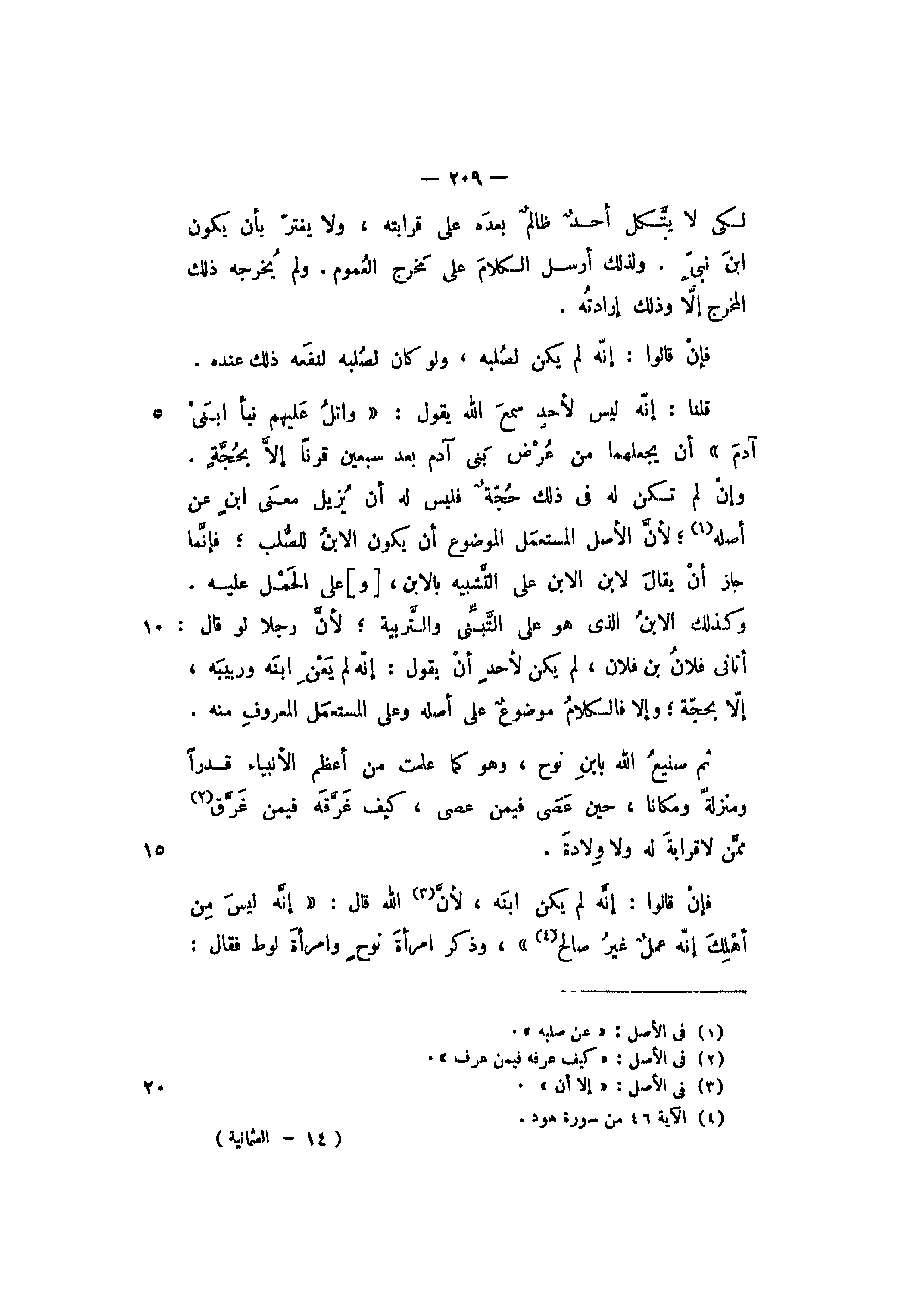 فإن قالوا: إنه لم يكن ابنه، لأن الله قال: {إنه ليس من أهلك إنه عمل غير صالح}، وذكر امرأة نوح وامرأة لوط فقال: