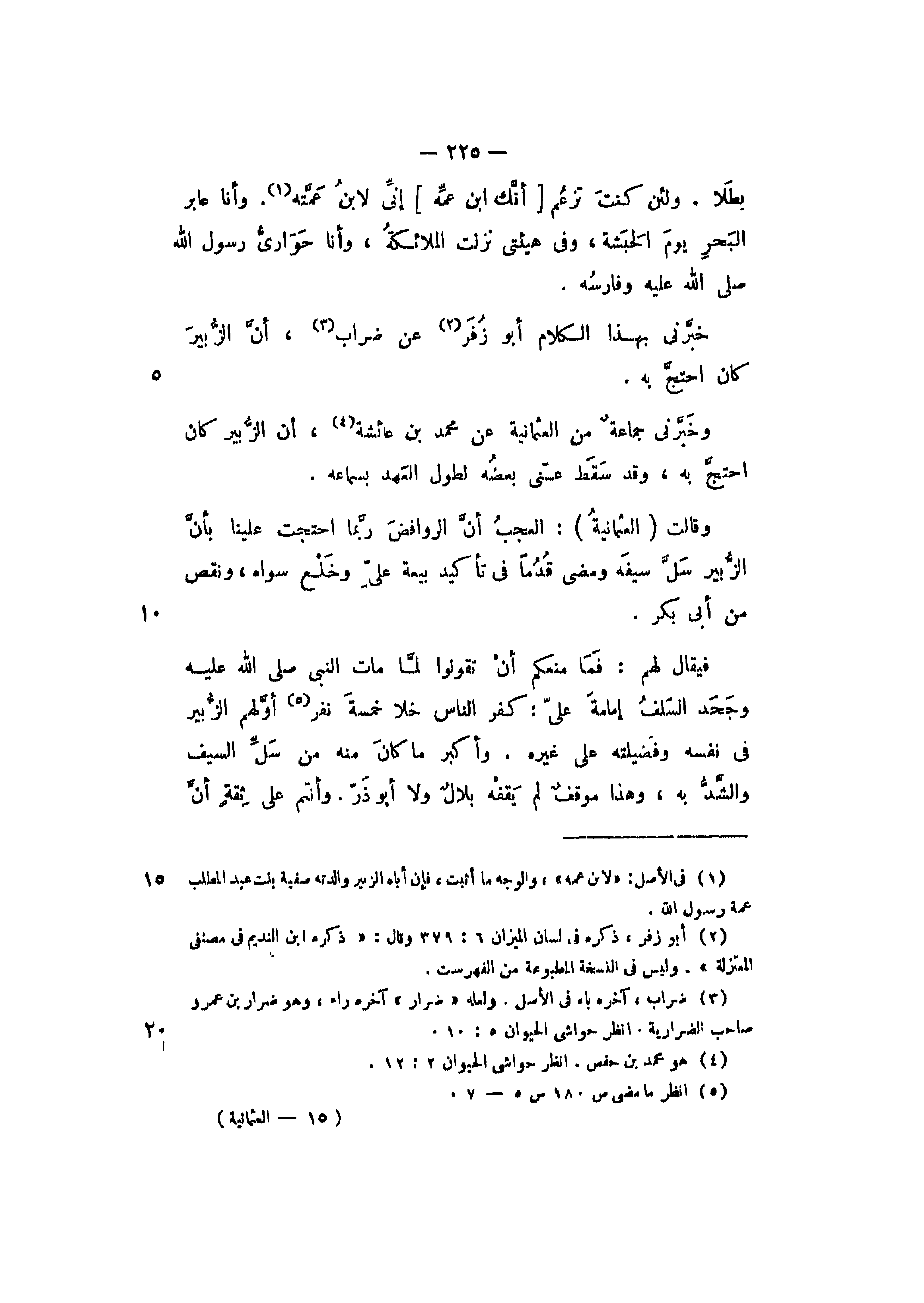 فيقال لهم: فما منعكم أن تقولوا لما مات النبي - صلى الله عليه - وجحد السلف إمامة علي: كفر الناس خلا خمسة نفر أولهم الزبير في نفسه وفضيلته على غيره، وأكبر ما كان منه من سل السيف والشد به، وهذا موقف لم يقفه بلال ولا أبو ذر. وأنتم على ثقة أن