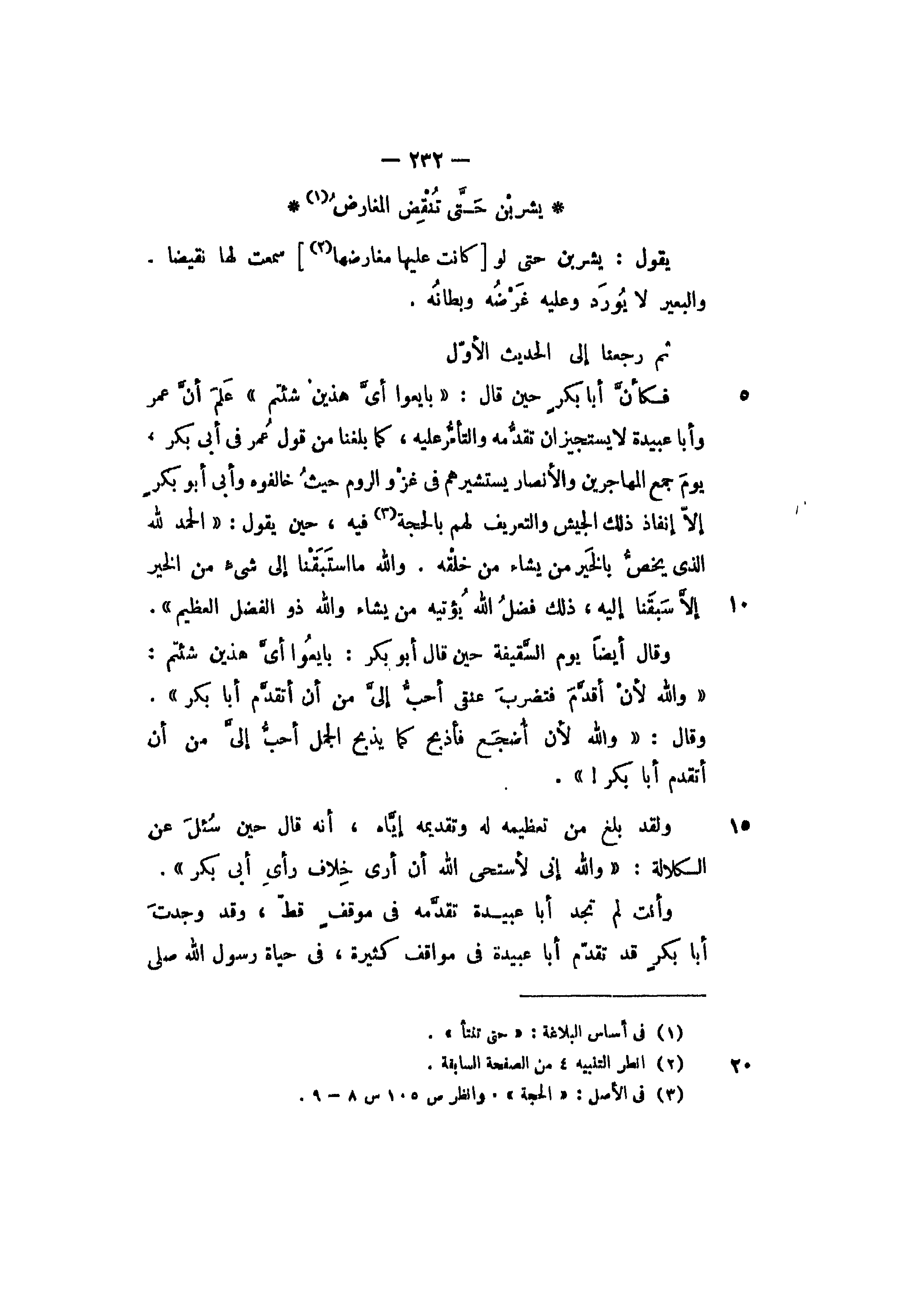 وأنت لم تجد أبا عبيدة تقدمه في موقف قط، وقد وجدت أبا بكر قد تقدم أبا عبيدة في مواقف كثيرة، في حياة رسول الله