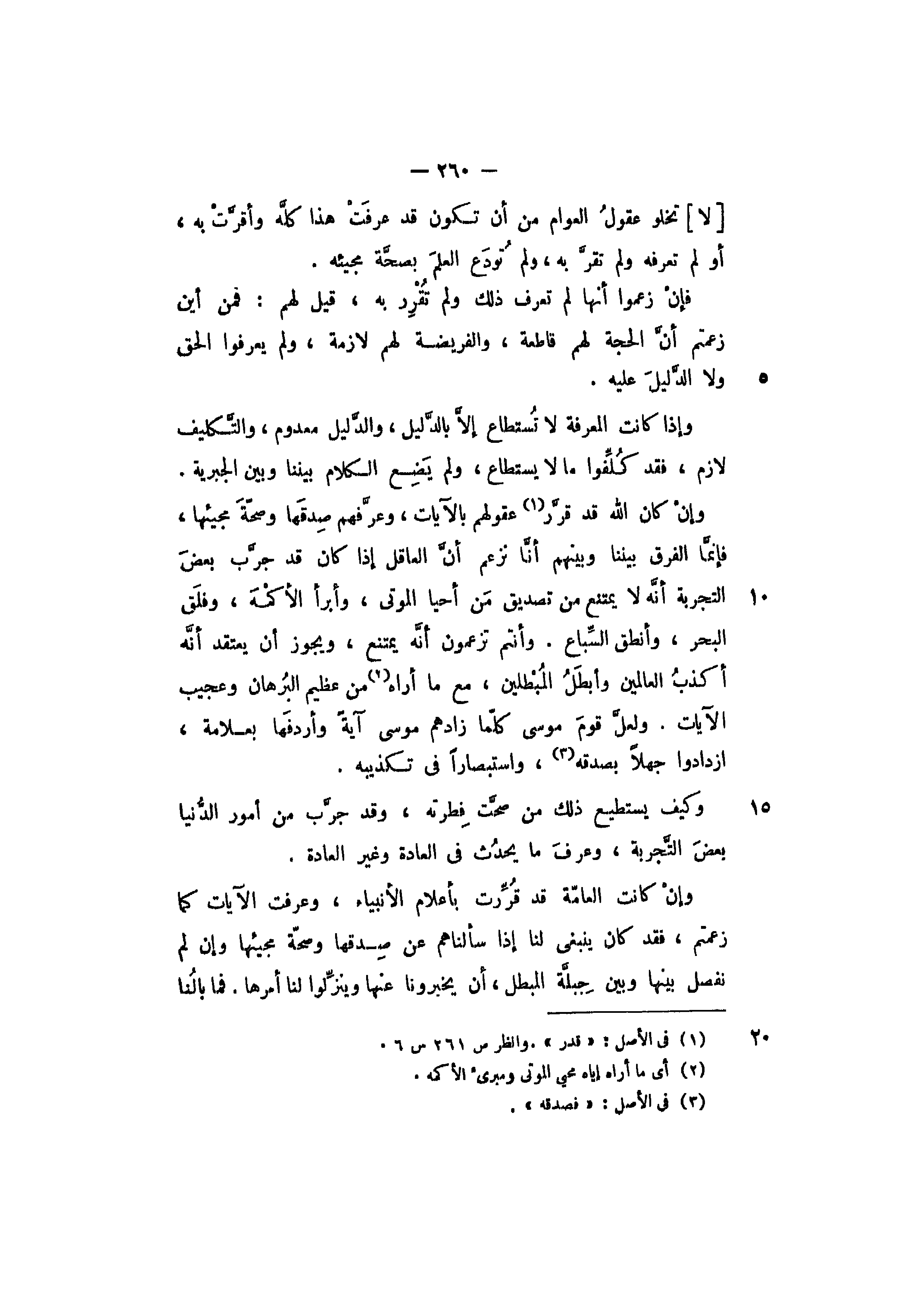 وإذا كانت المعرفة لا تستطاع إلا بالدليل، والدليل معدوم، والتكليف لازم، فقد كلفوا ما لا يستطاع، ولم يضع الكلام بيننا وبين الجبرية.