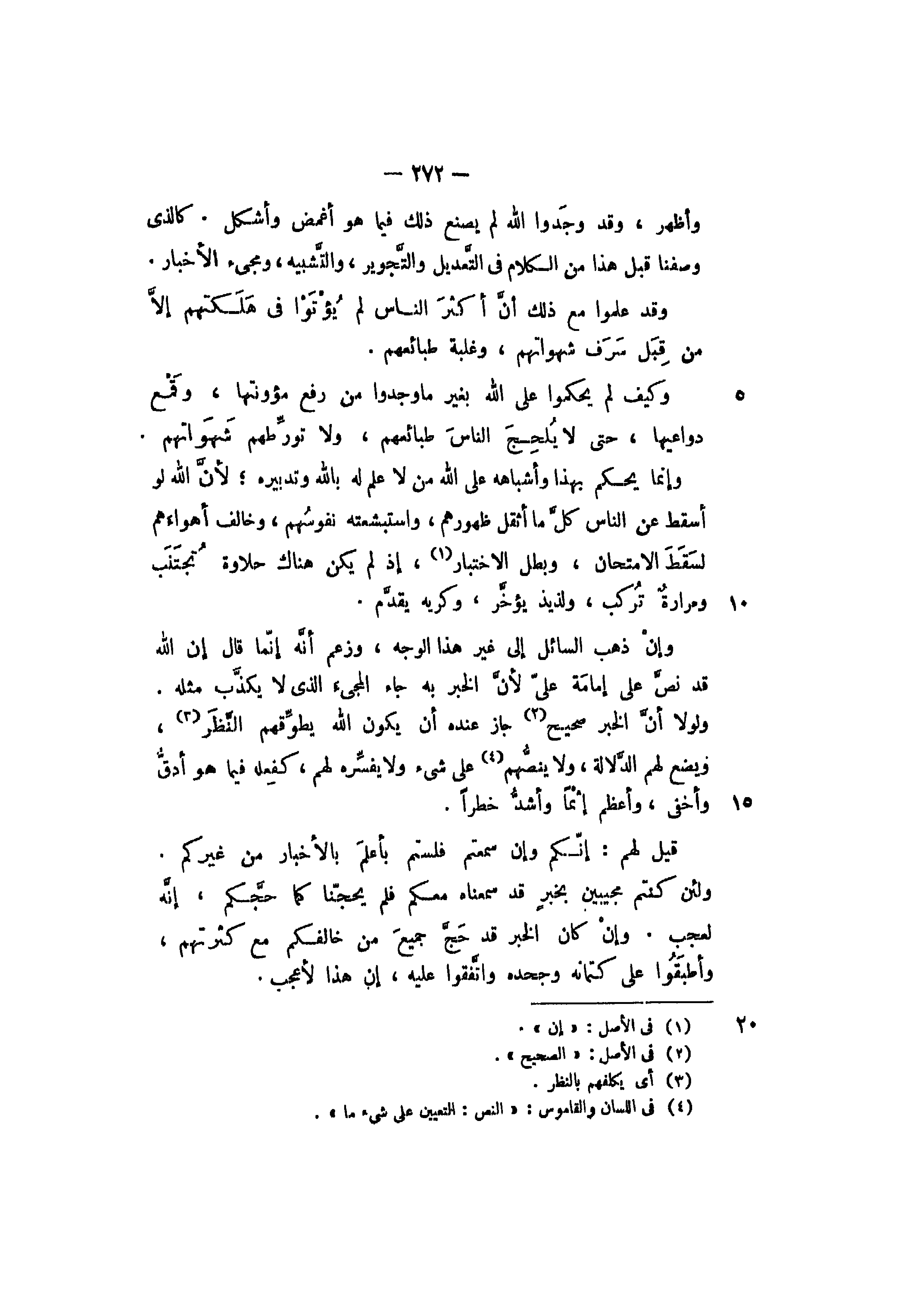 وأظهر، وقد وجدوا الله لم يصنع ذلك فيما هو أغمض وأشكل، كالذي وصفنا قبل هذا من الكلام في التعديل والتجوير والتشبيه ومجئ الأخبار.