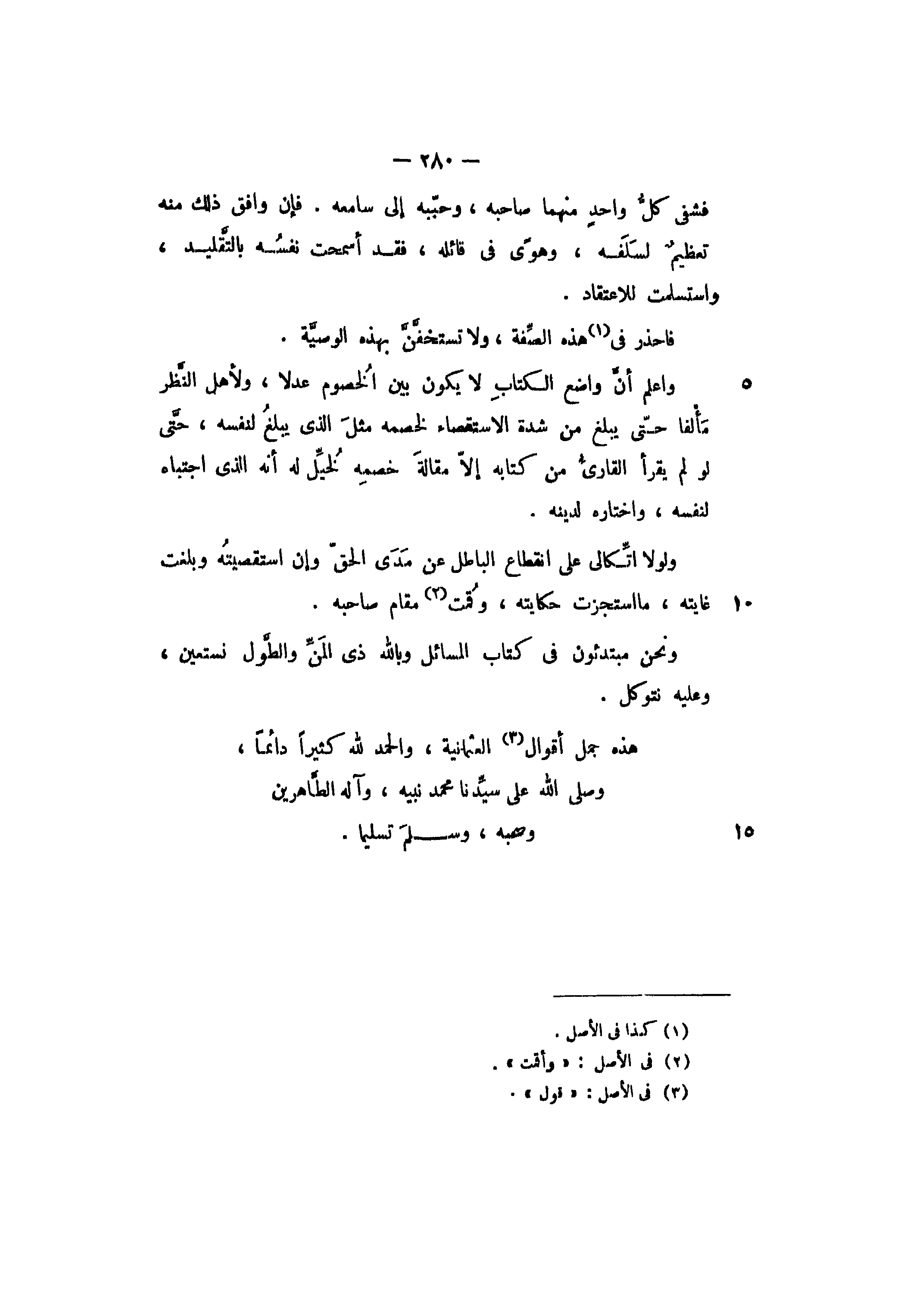 هذه جمل أقوال العثمانية. والحمد لله كثيرا دائما، وصلى الله على سيدنا محمد نبيه، وآله الطاهرين وصحبه، وسلم تسليما.