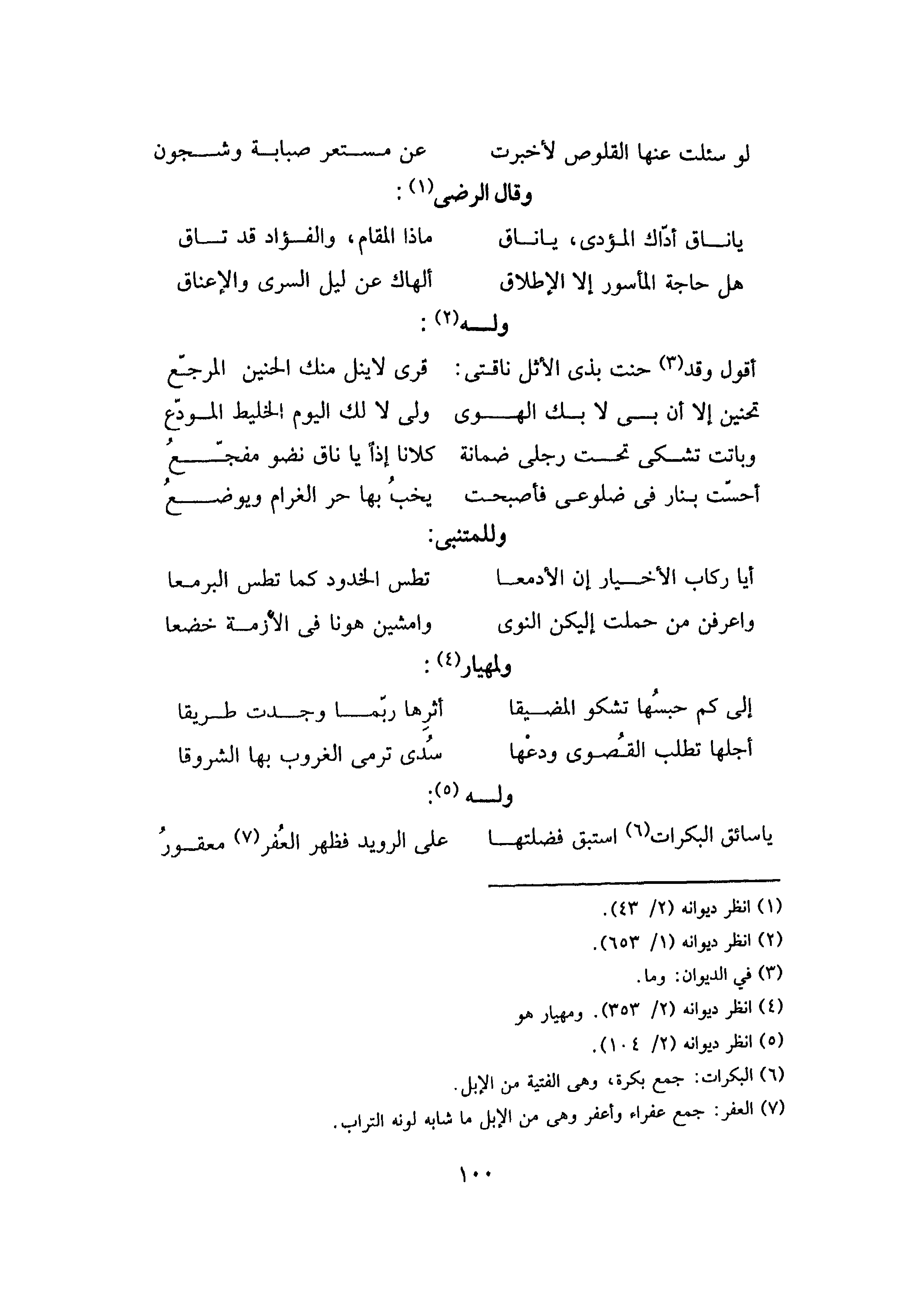 يَا نَاقُ أَدَّاكَ الْمُؤَدِّي، يَا نَاقْ ... مَاذَا الْمُقَامُ، وَالْفُؤَادُ قَدْ تَاقْ
