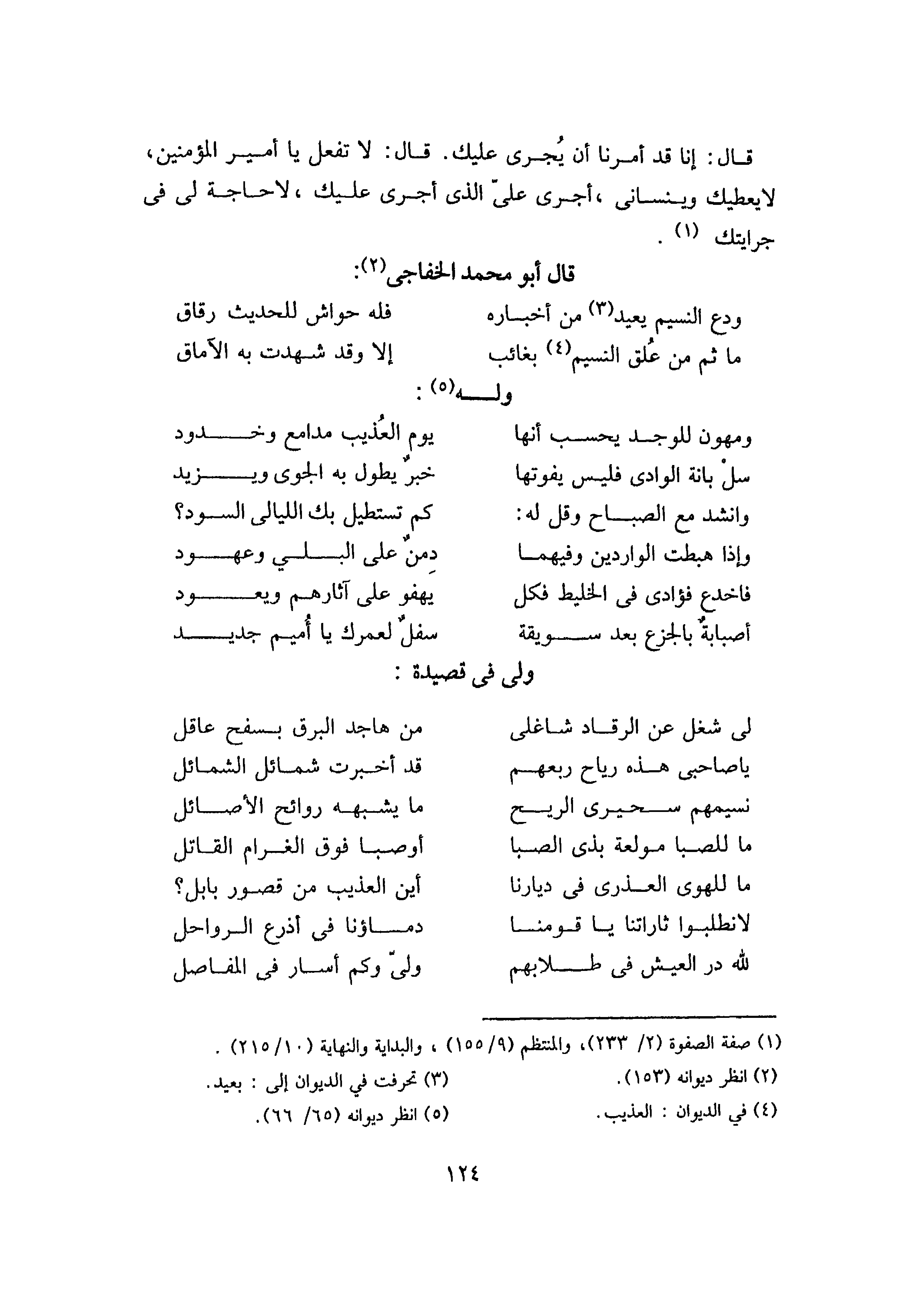 قَالَ أَبُو مُحَمَّدٍ الْخَفَاجِيُّ: