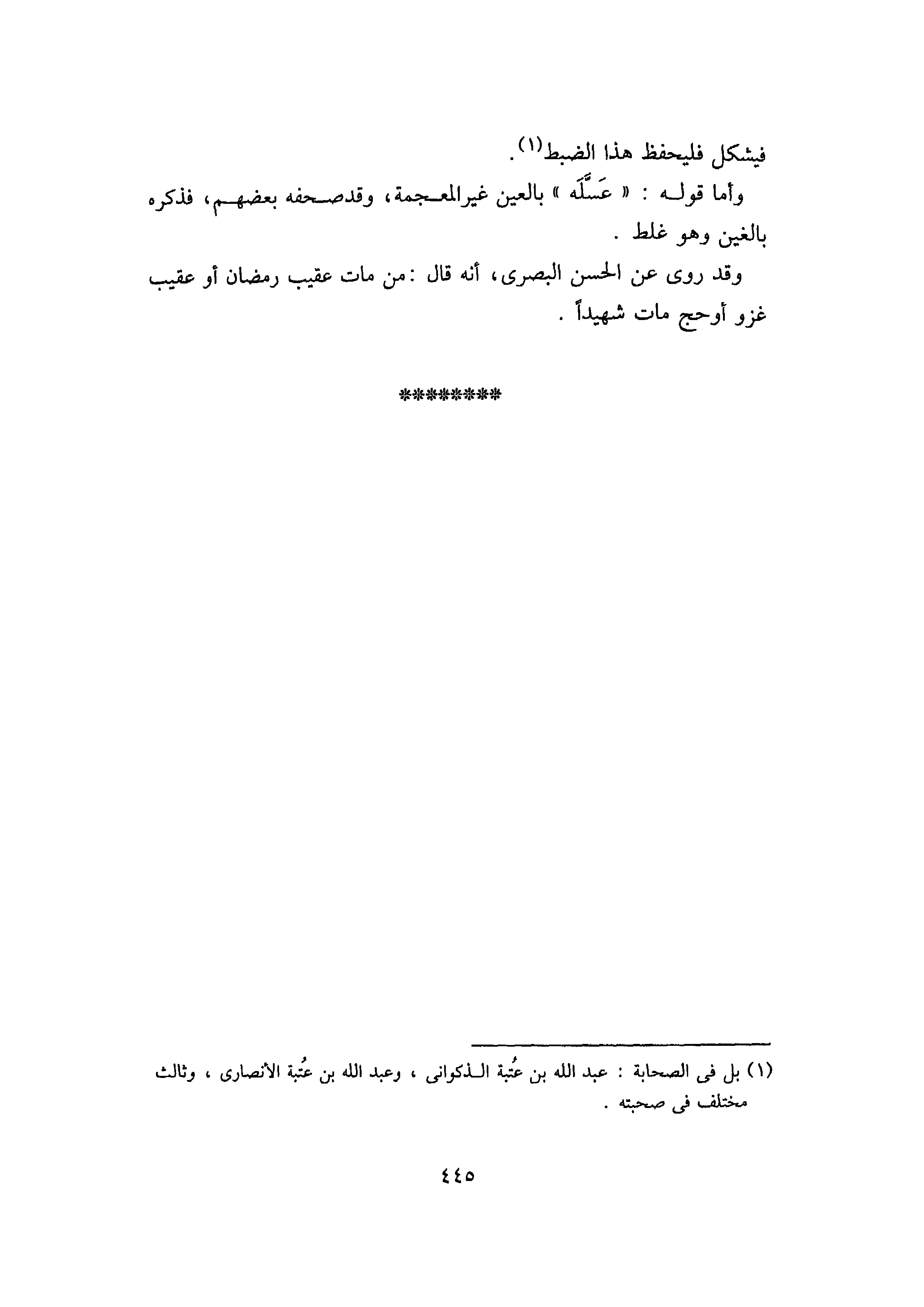 وَأَمَّا قَوْلُهُ: «عَسَّلَهُ» ، بِالْعَيْنِ غَيْرِ الْمُعْجَمَةِ، وَقَدْ صَحَّفَهُ بَعْضُهُمْ، فَذَكَرَهُ بِالْغَيْنِ وَهُوَ غَلَطٌ
