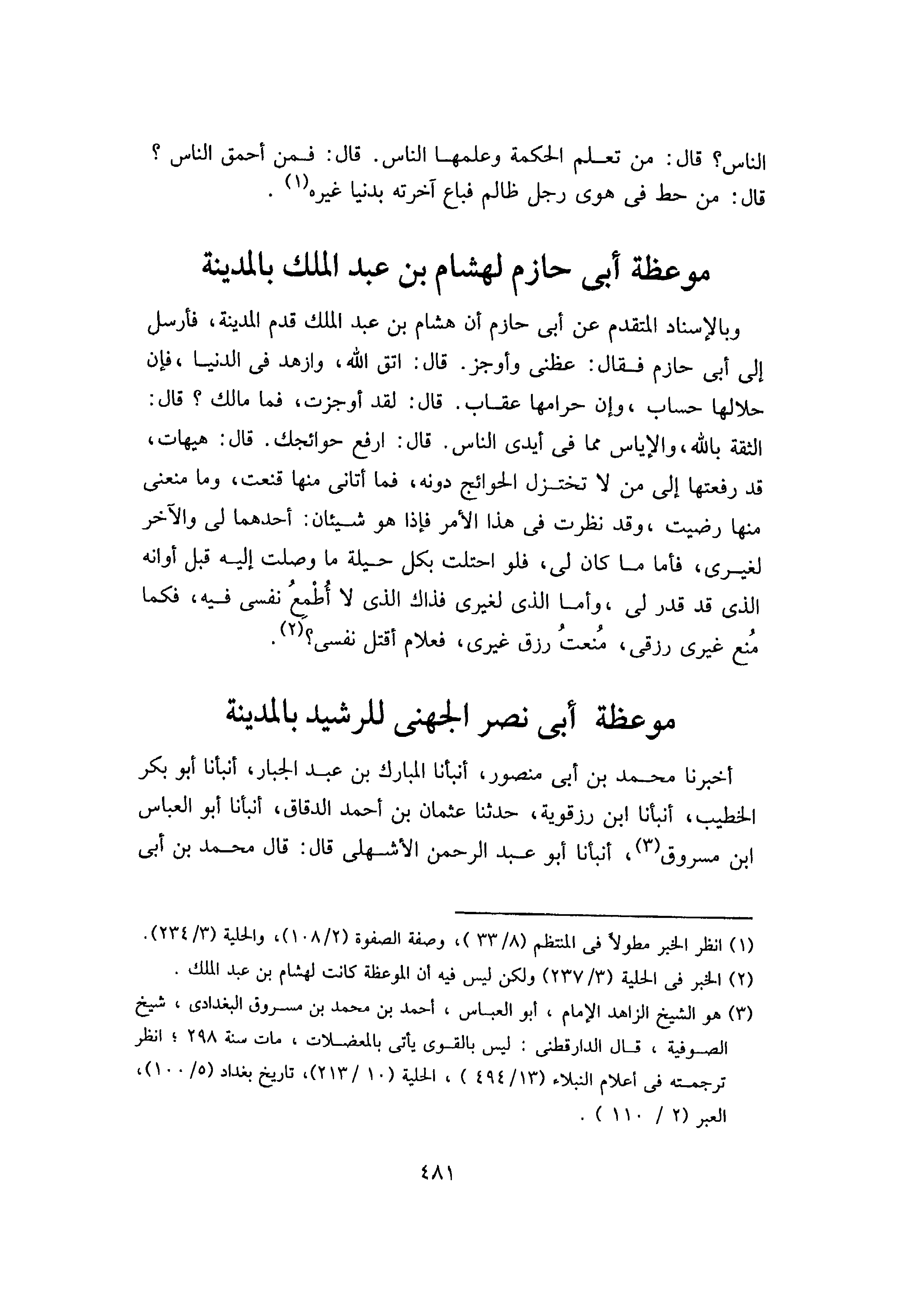 مَوْعِظَةُ أَبِي حَازِمٍ لِهِشَامِ بْنِ عَبْدِ الْمَلِكِ بِالْمَدِينَةِ