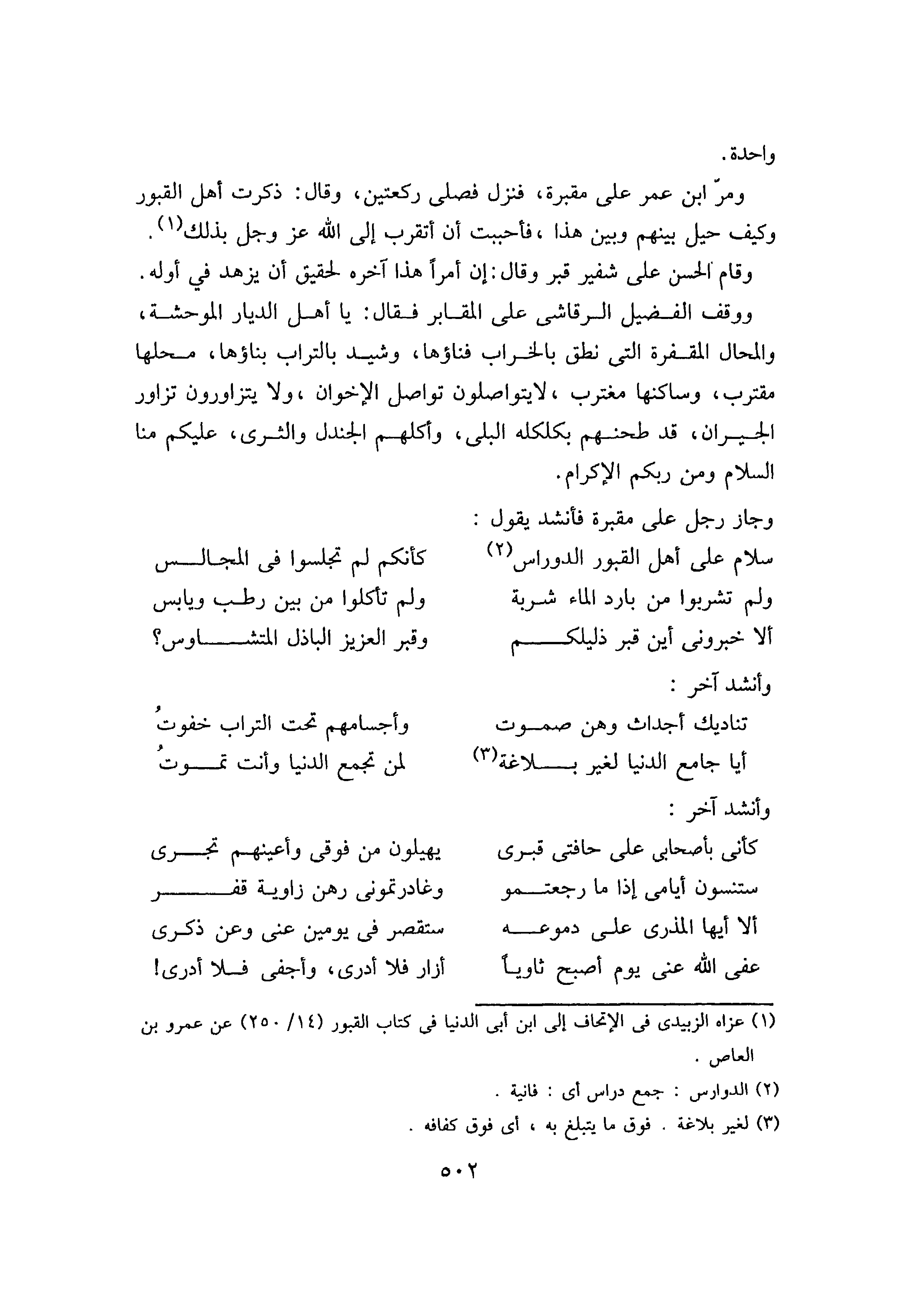 وَجَازَ رَجُلٌ عَلَى مَقْبُرَةٍ فَأَنْشَدَ يَقُولُ: