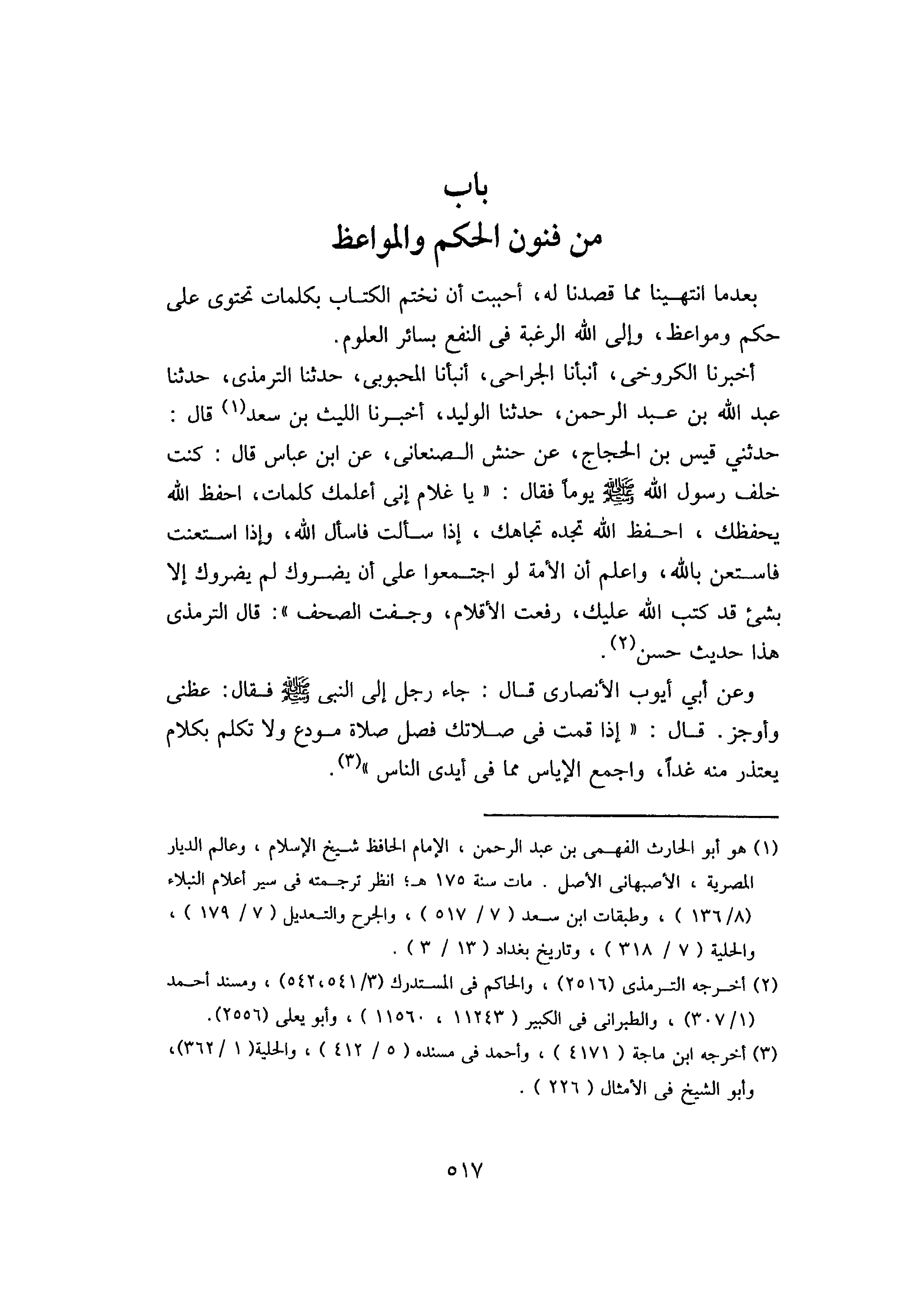 بَابٌ مِنْ فُنُونِ الْحِكَمِ وَالْمَوَاعِظِ