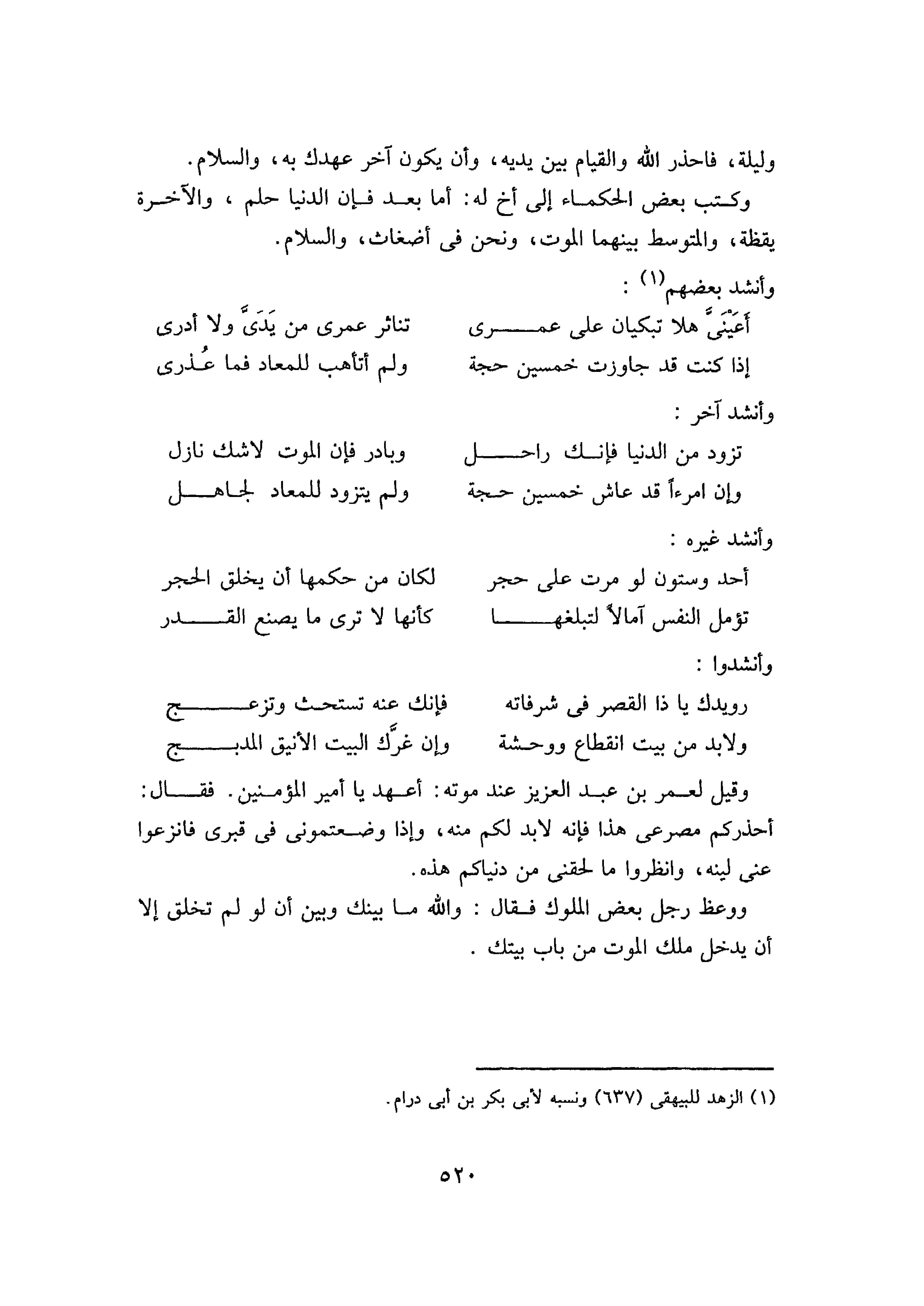 تَزَوَّدْ مِنَ الدُّنْيَا فَإِنَّكَ رَاحِلُ ... وَبَادِرْ فَإِنَّ الْمَوْتَ لا شَكَّ نَازِلُ