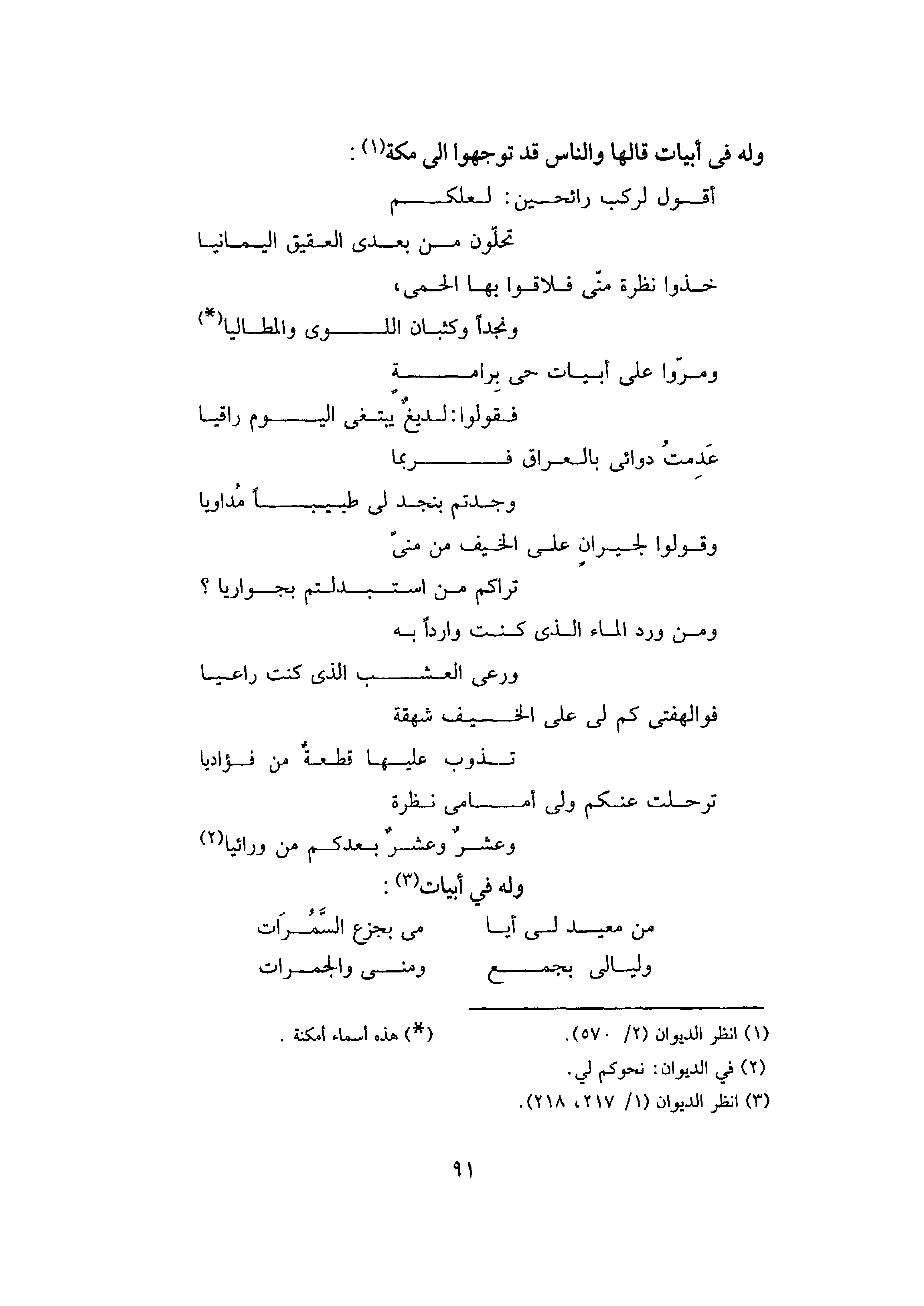 وَلَهُ فِي أَبْيَاتٍ قَالَهَا وَالنَّاسُ قَدْ تَوَجَّهُوا إِلَى مَكَّةَ: