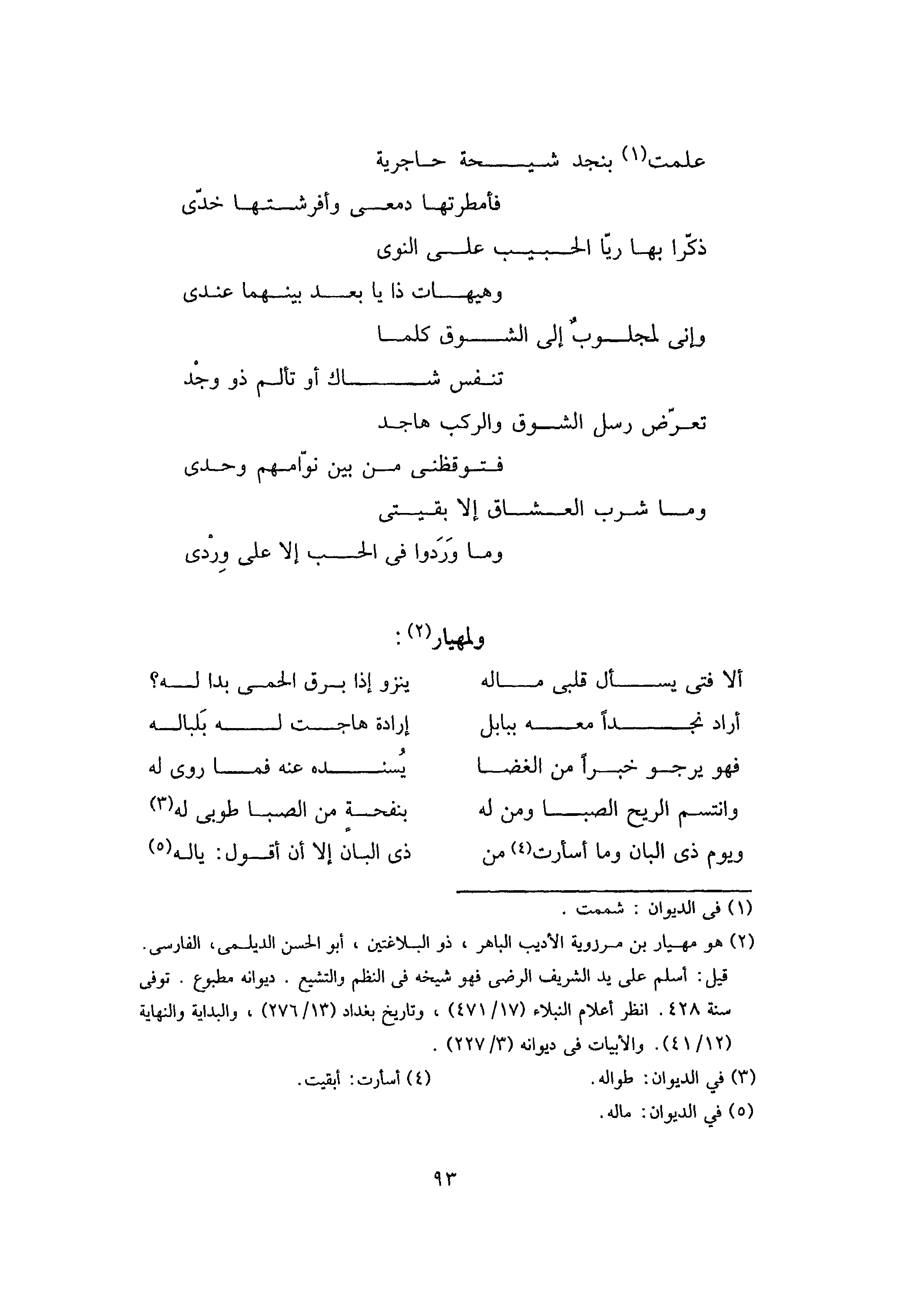 عَلِمْتُ بِنَجْدٍ شَيْحَةً حَاجِرِيَّةً ... فَأَمْطَرْتُهَا دَمْعِي وَأَفْرَشْتُهَا خَدِّي