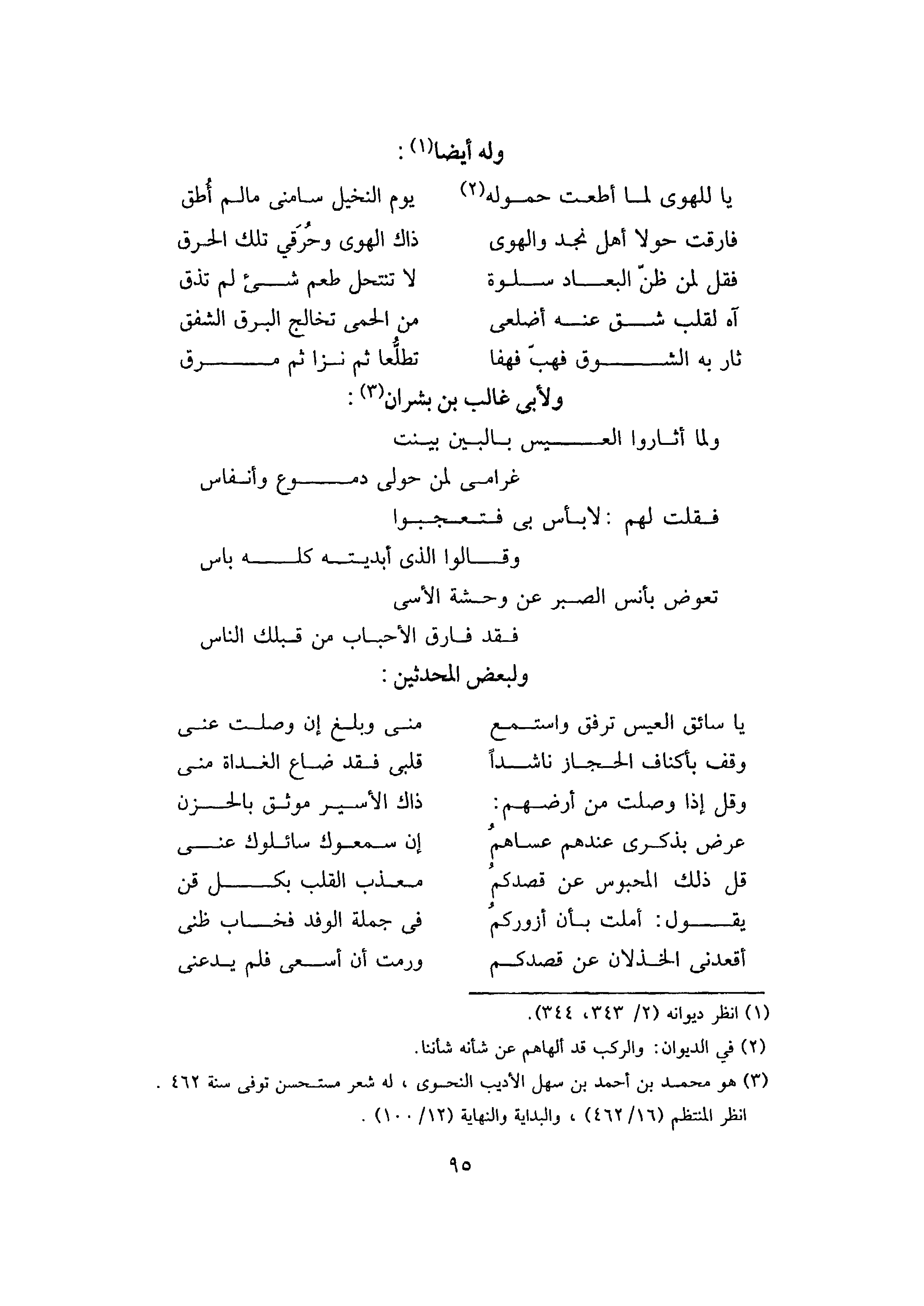 وَقِفَ بِأَكْنَافِ الْحِجَازِ نَاشِدًا ... قَلْبِي فَقَدْ ضَاعَ الْغَدَاةَ مِنِّي