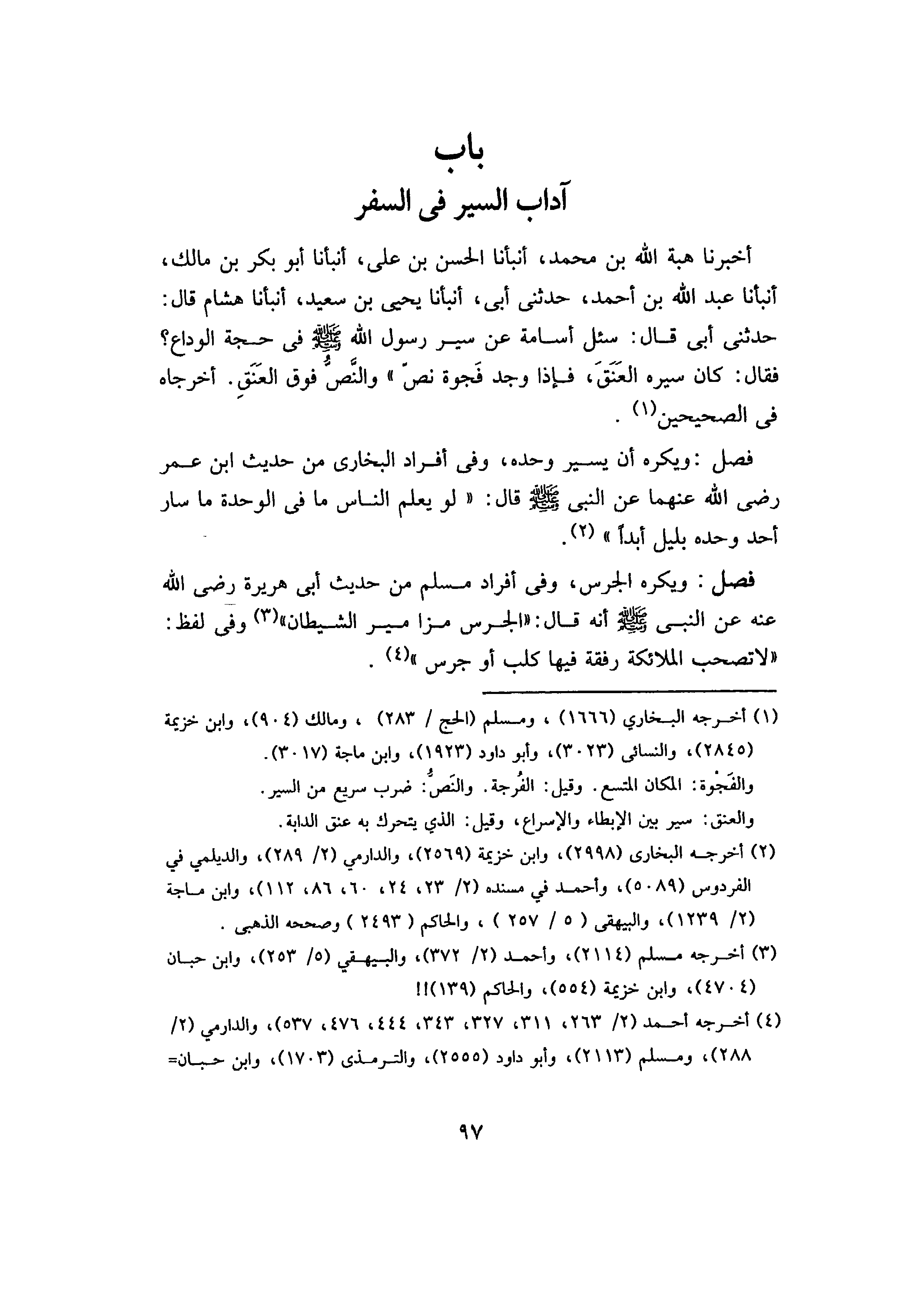 بَابٌ آدَابُ السَّيْرِ فِي السَّفَرِ