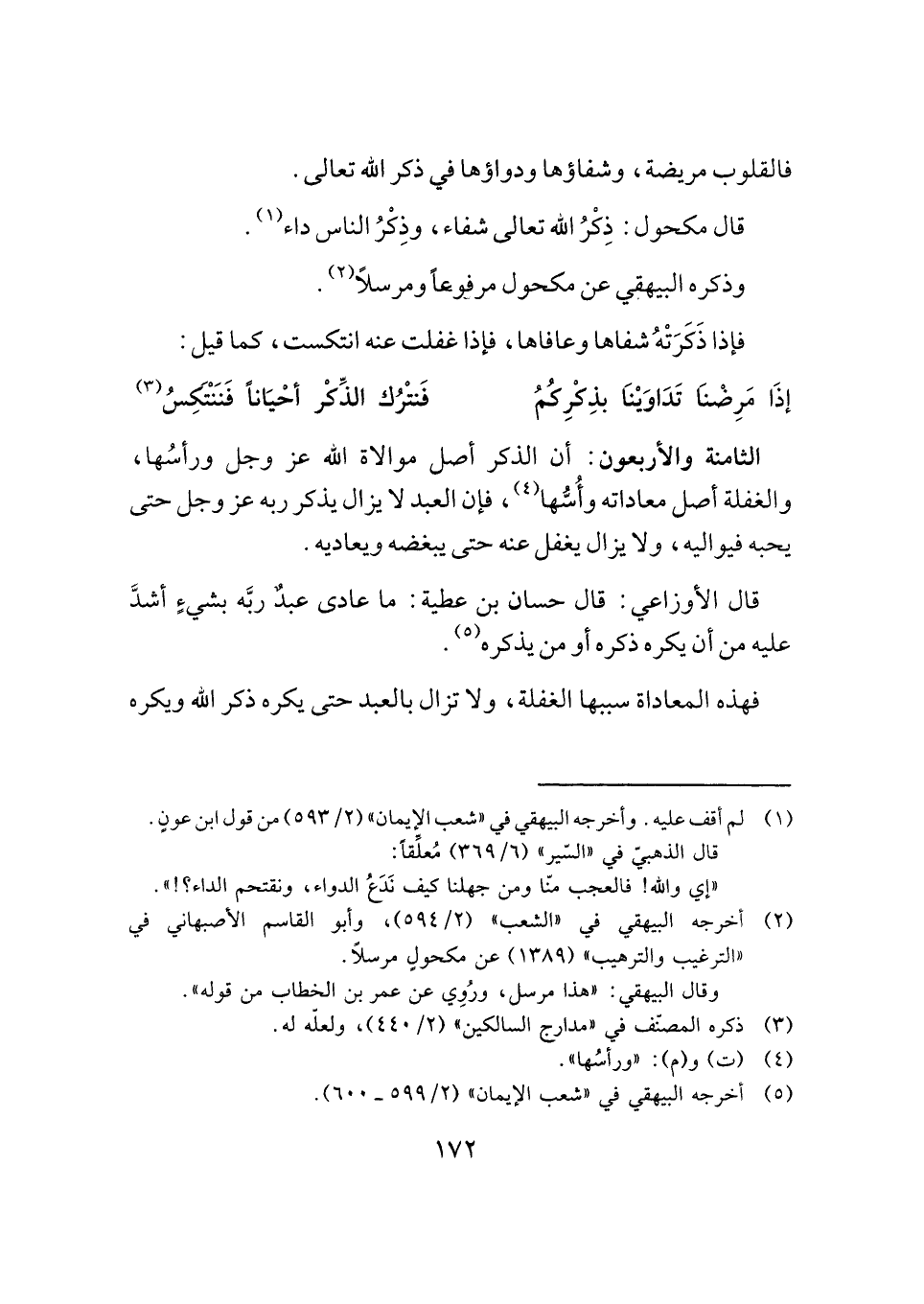 قال الأوزاعي: قال حسان بن عطية: ما عادى عبدٌ ربَّه بشيءٍ أشدَّ عليه من أن يكره ذكره أو من يذكره (¬٥).