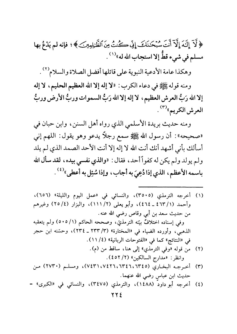 {لَا إِلَهَ إِلَّا أَنْتَ سُبْحَانَكَ إِنِّي كُنْتُ مِنَ الظَّالِمِينَ}؛ فإنه لم يَدْعُ بها مسلم في شيء قطُّ إلا استجاب الله له" (¬١) .
