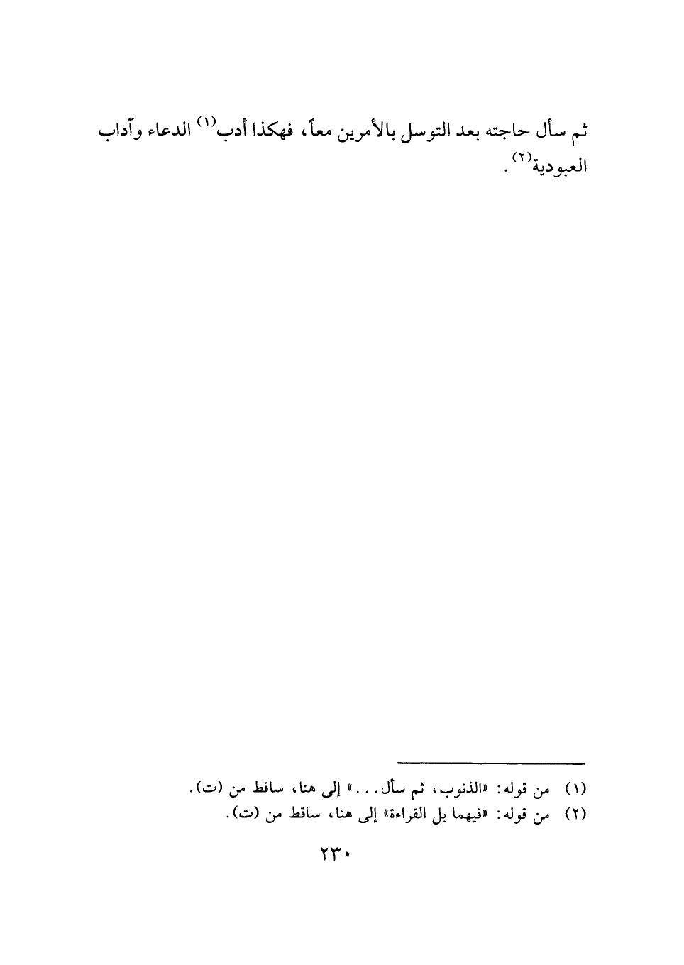ثم سأل حاجته بعد التوسل بالأمرين معًا، فهكذا أدب (¬١) الدعاء وآداب العبودية (¬٢) .