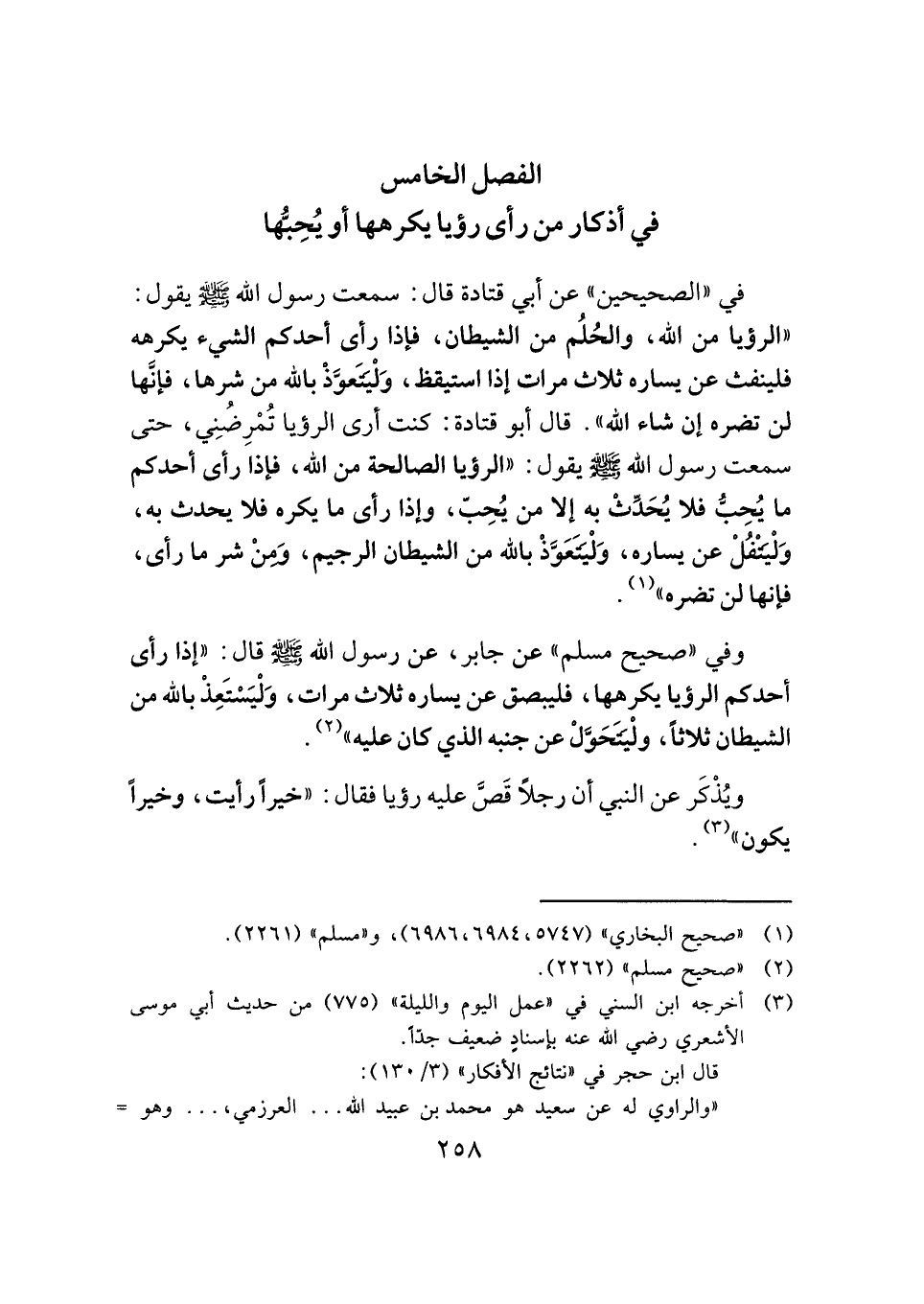 الفصل الخامس: في أذكار من رأى رؤيا يكرهها أو يُحِبُّها