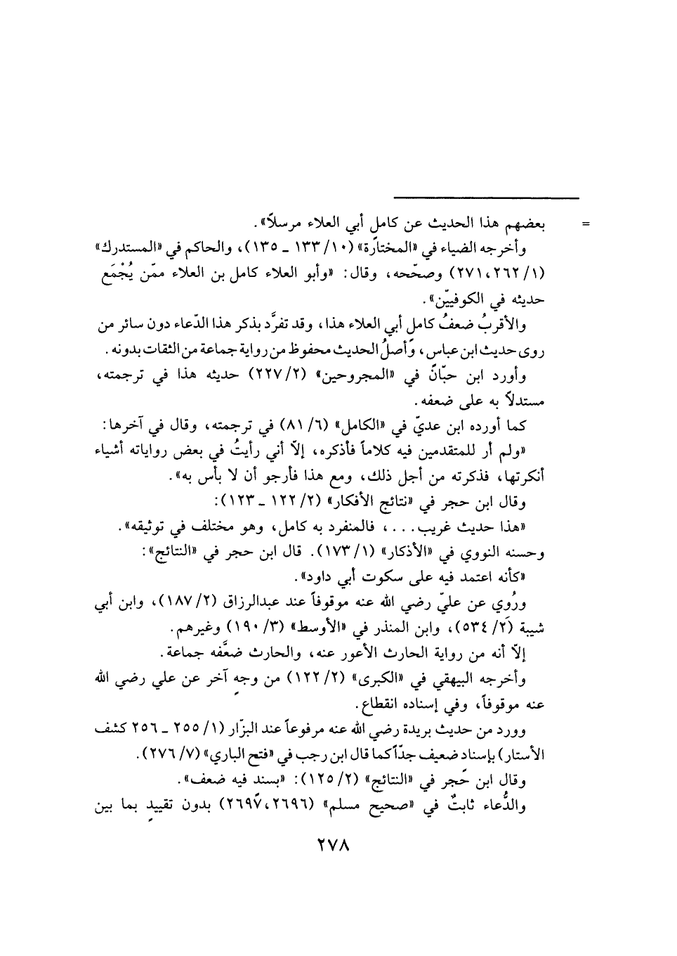 وأخرجه الضياء في "المختارة" (١٠/ ١٣٣ - ١٣٥)، والحاكم في "المستدرك" (١/ ٢٦٢، ٢٧١) وصحّحه، وقال: "وأبو العلاء كامل بن العلاء ممّن يُجْمَع حديثه في الكوفيّين".