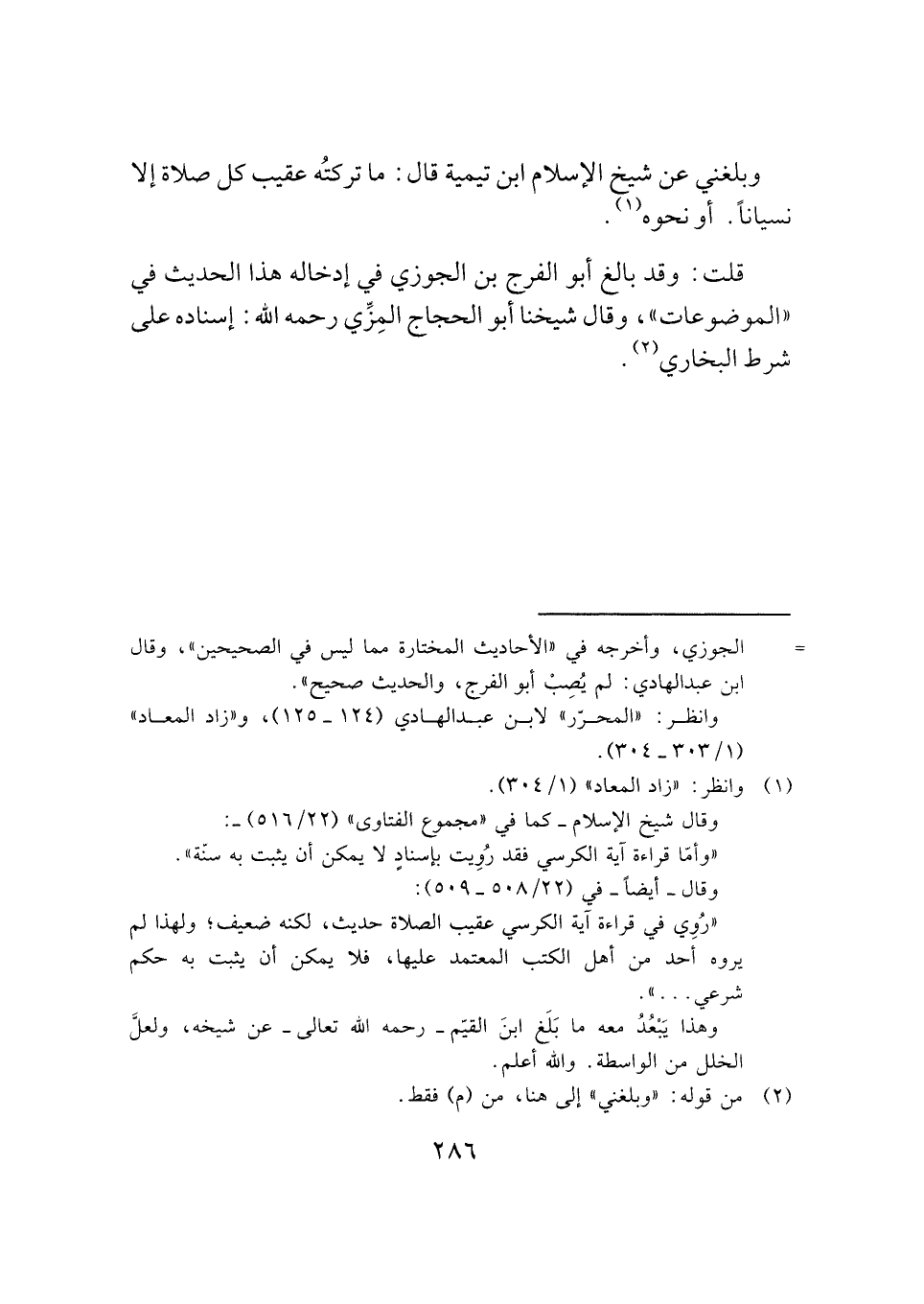 (¬١) وانظر: "زاد المعاد" (١/ ٣٠٤).