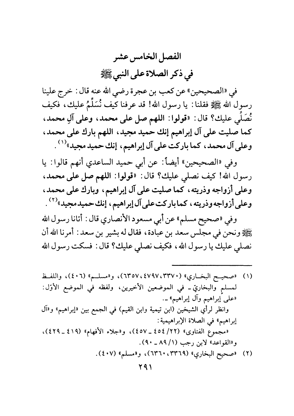 الفصل الخامس عشر: في ذكر الصلاة على النبي -صَلَّى اللهُ عَلَيْهِ وَسَلَّمَ-
