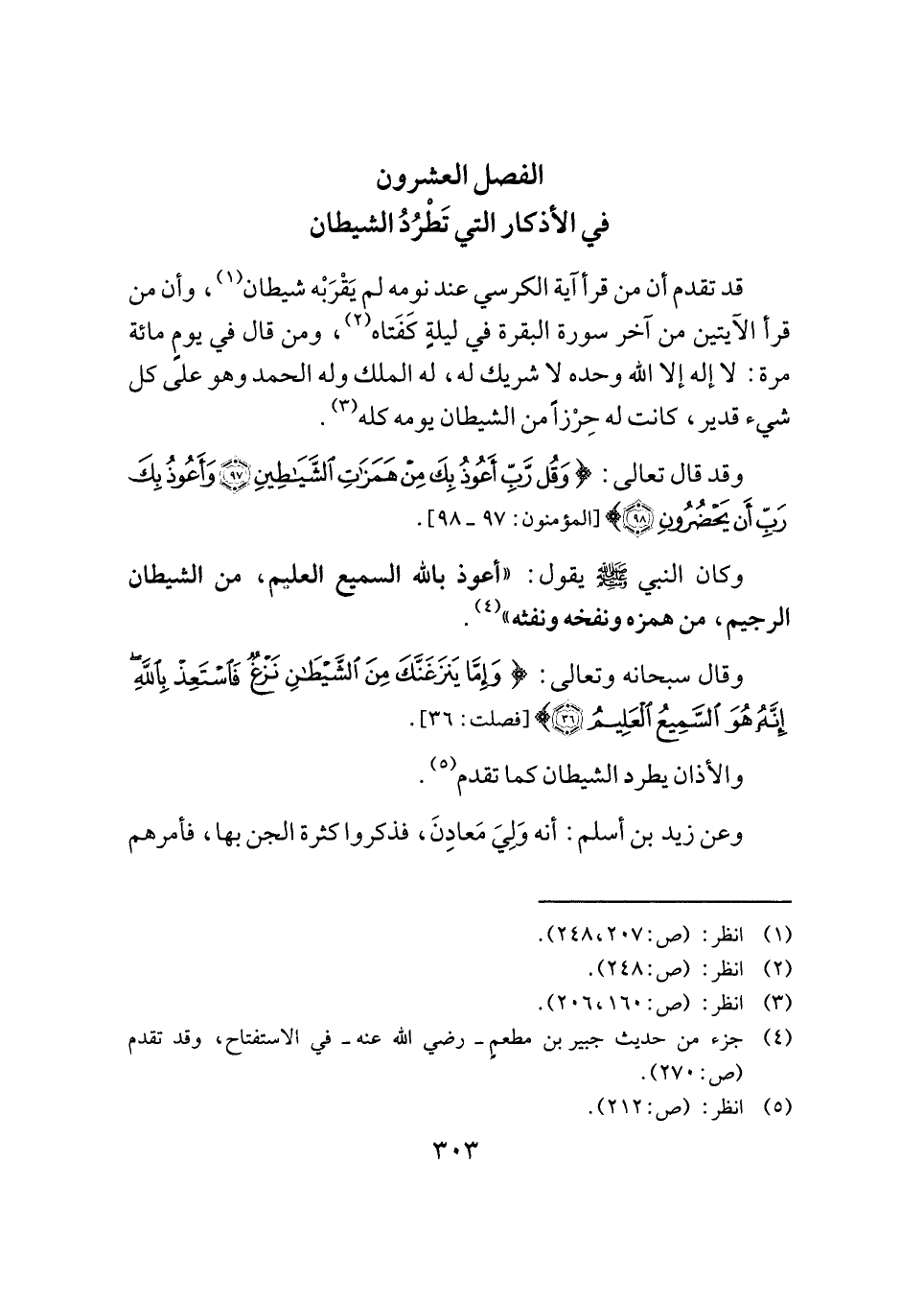 الفصل العشرون: في الأذكار التي تَطْرُدُ الشيطان