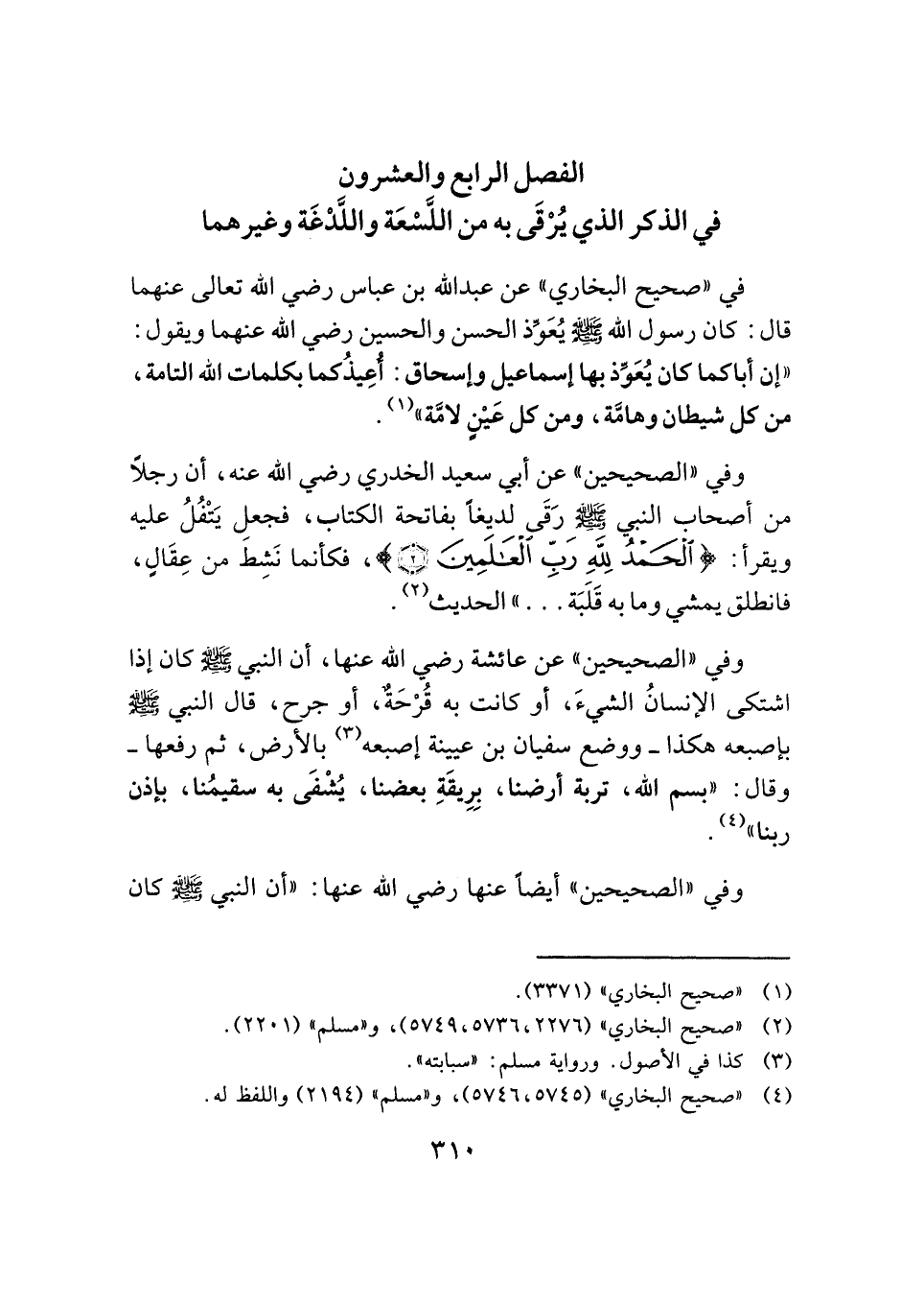 الفصل الرابع والعشرون: في الذكر الذي يُرْقَى به من اللَّسْعَة واللَّدْغَة وغيرهما