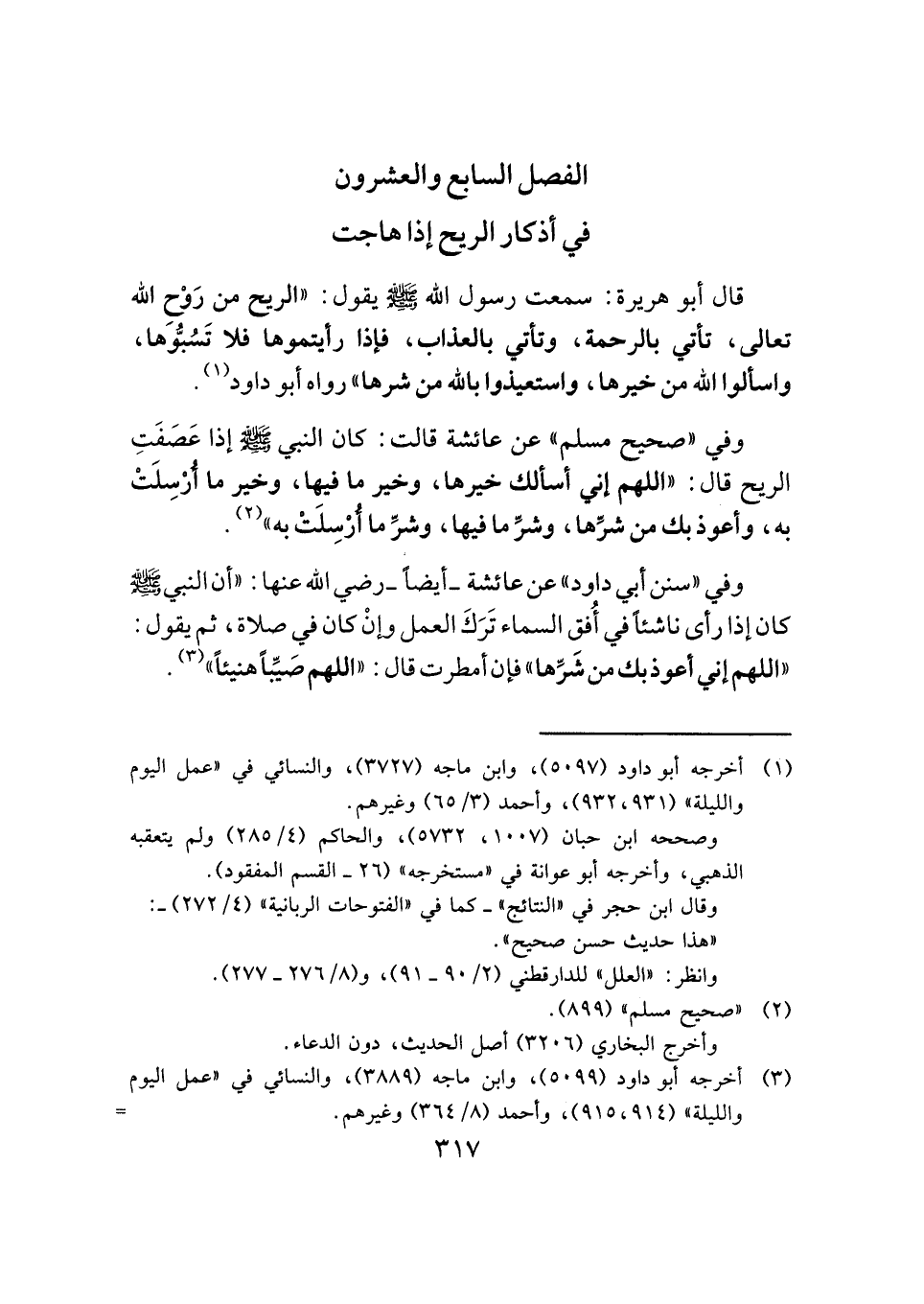 الفصل السابع والعشرون: في أذكار الريح إذا هاجت