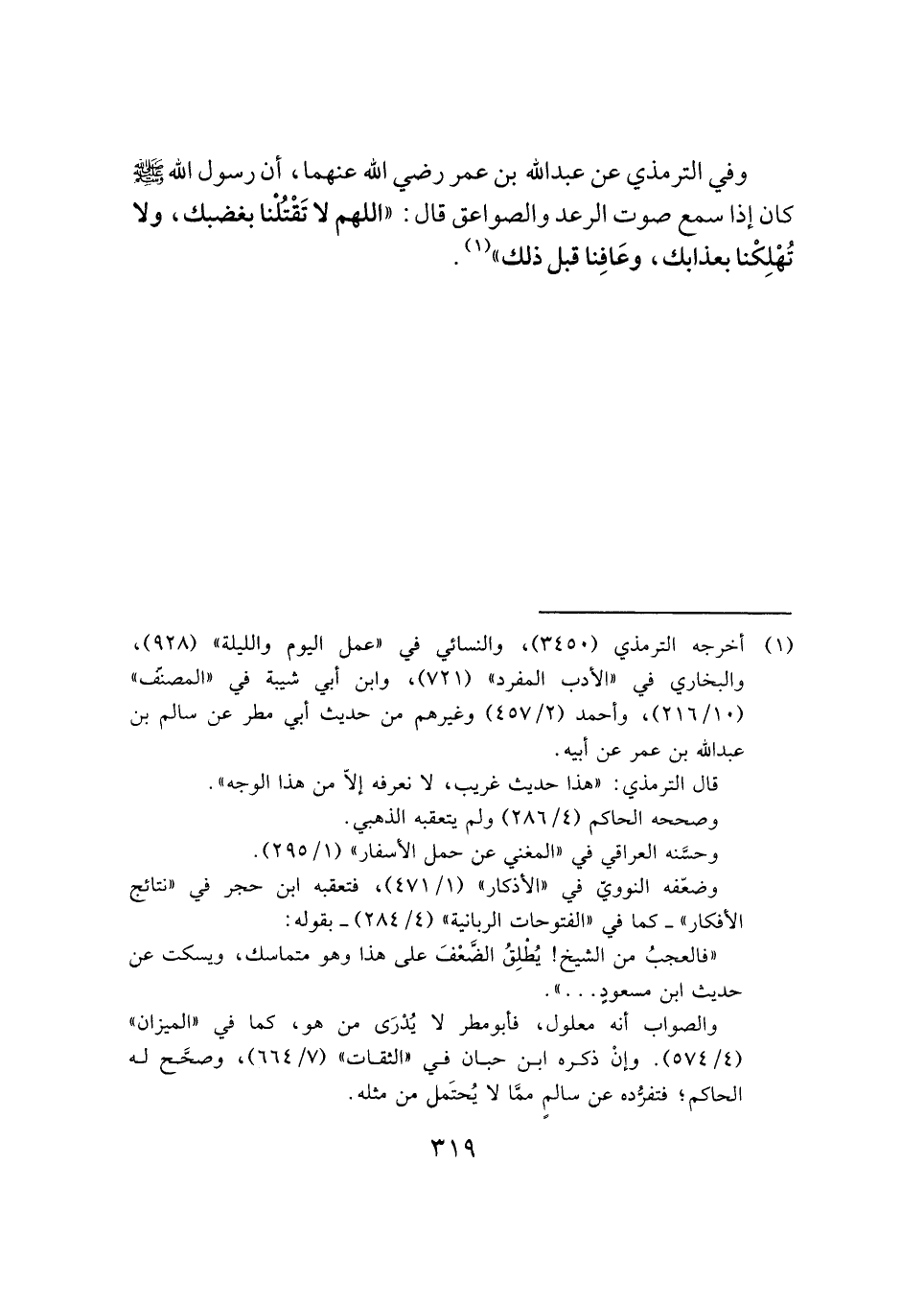 (¬١) أخرجه الترمذي (٣٤٥٠)، والنسائي في "عمل اليوم والليلة" (٩٢٨)، والبخاري في "الأدب المفرد" (٧٢١)، وابن أبي شيبة في "المصنّف" (١٠/ ٢١٦)، وأحمد (٢/ ٤٥٧) وغيرهم من حديث أبي مطر عن سالم بن عبد الله بن عمر عن أبيه.