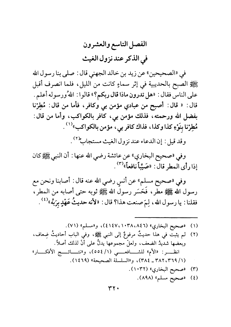 الفصل التاسع والعشرون: في الذكر عند نزول الغيث