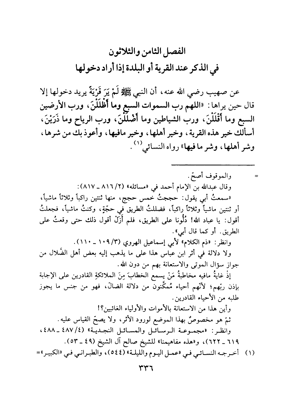 الفصل الثامن والثلاثون: في الذكر عند القرية أو البلدة إذا أراد دخولها