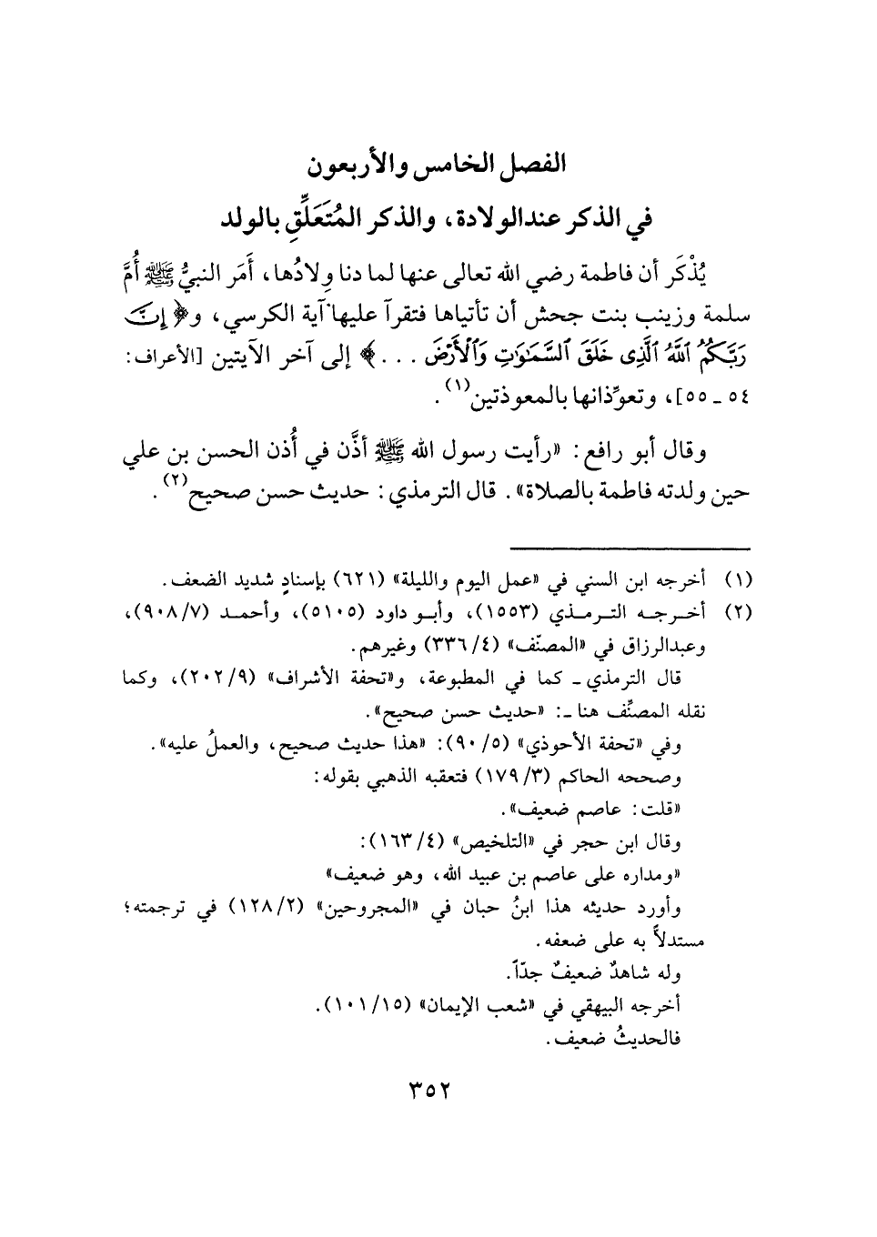 الفصل الخامس والأربعون: في الذكر عند الولادة، والذكر المُتَعَلِّقِ بالولد