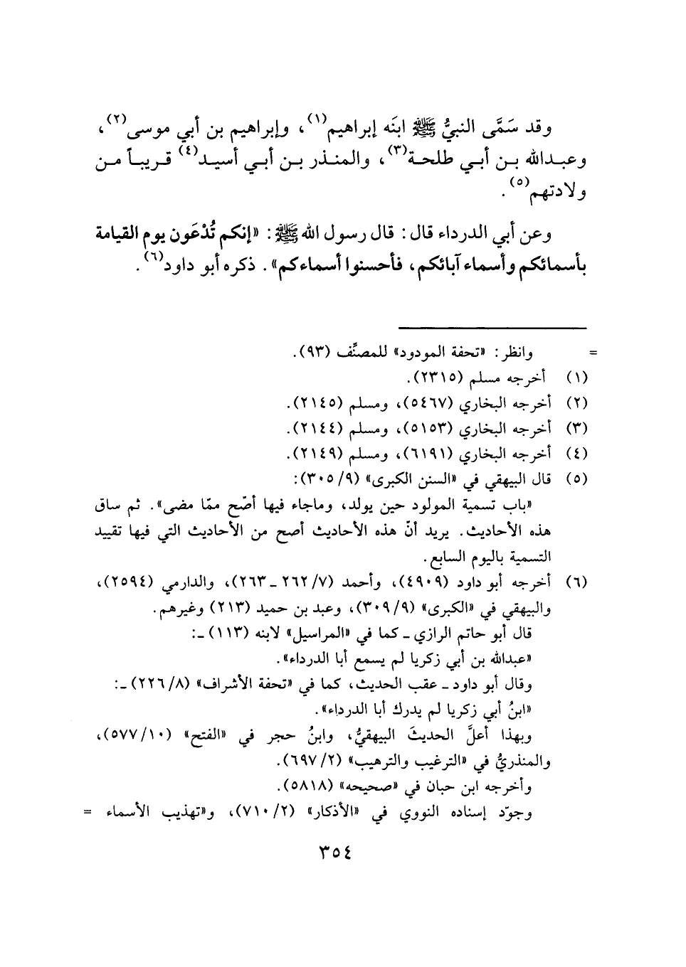 وعن أبي الدرداء قال: قال رسول الله -صَلَّى اللهُ عَلَيْهِ وَسَلَّمَ-: "إنكم تُدْعَون يوم القيامة بأسمائكم وأسماء آبائكم، فأحسنوا أسماءكم". ذكره أبو داود (¬٦) .