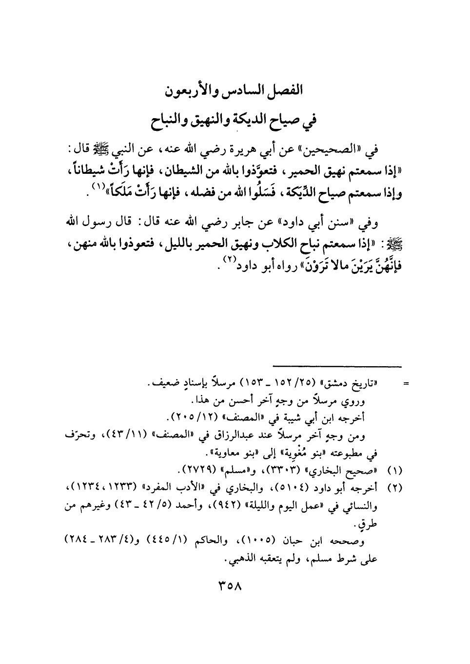 الفصل السادس والأربعون: في صياح الديكة والنهيق والنباح