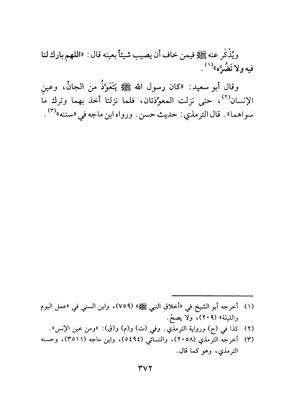 وقال أبو سعيد: "كان رسول الله -صَلَّى اللهُ عَلَيْهِ وَسَلَّمَ- يَتَعَوَّذُ من الجانِّ، وعينِ الإنسان (¬٢) ، حتى نزلت المعوِّذتان، فلما نزلتا أخذ بهما وترك ما سواهما". قال الترمذي: حديث حسن. ورواه ابن ماجه في "سننه" (¬٣) .