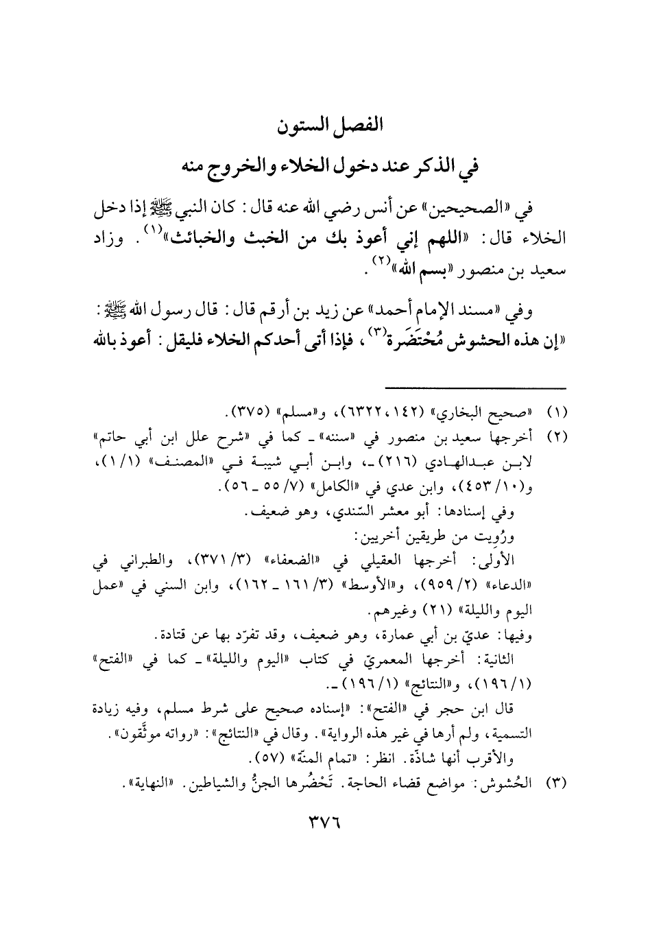 الفصل الستون: في الذكر عند دخول الخلاء والخروج منه