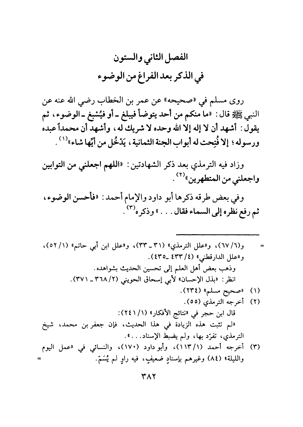 الفصل الثاني والستون: في الذكر بعد الفراغ من الوضوء