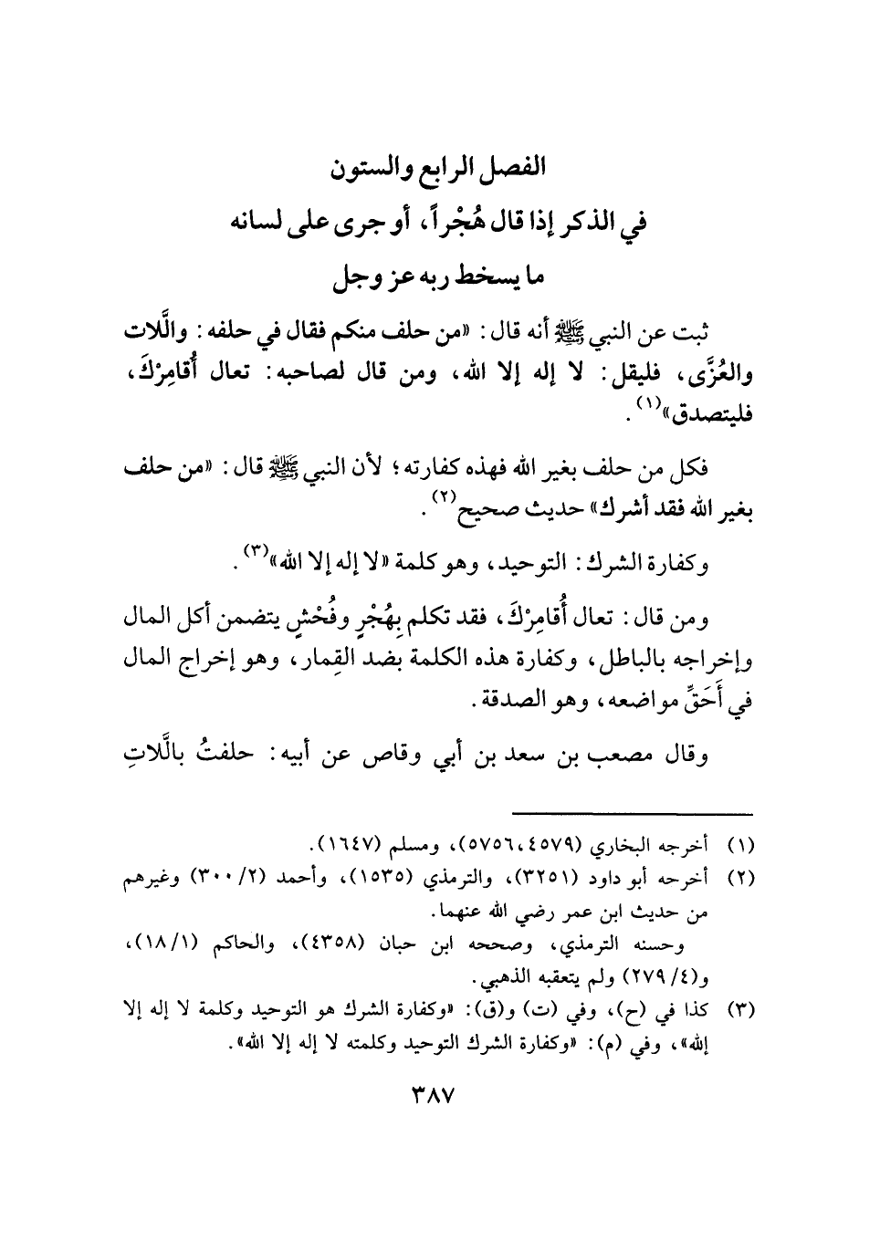وقال مصعب بن سعد بن أبي وقاص عن أبيه: حلفتُ بالَّلاتِ