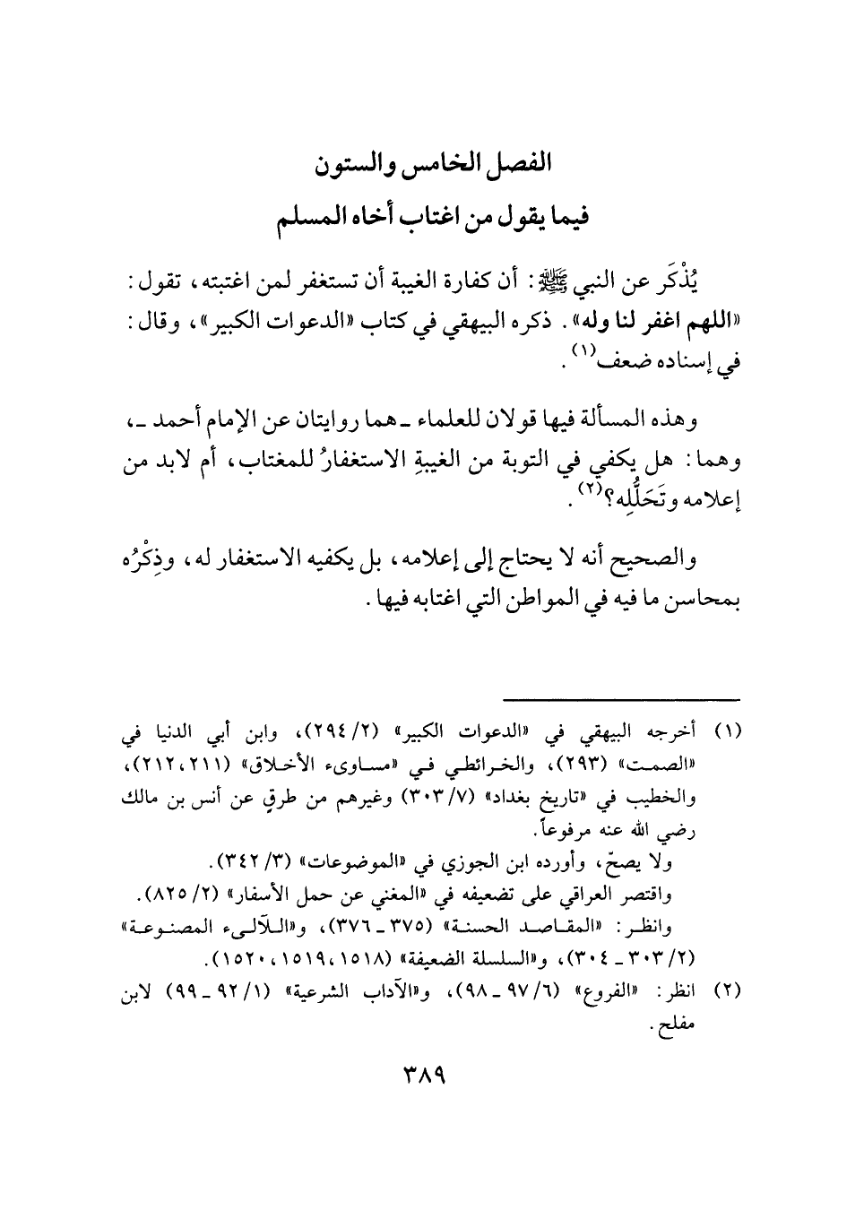 الفصل الخامس والستون: فيما يقول من اغتاب أخاه المسلم