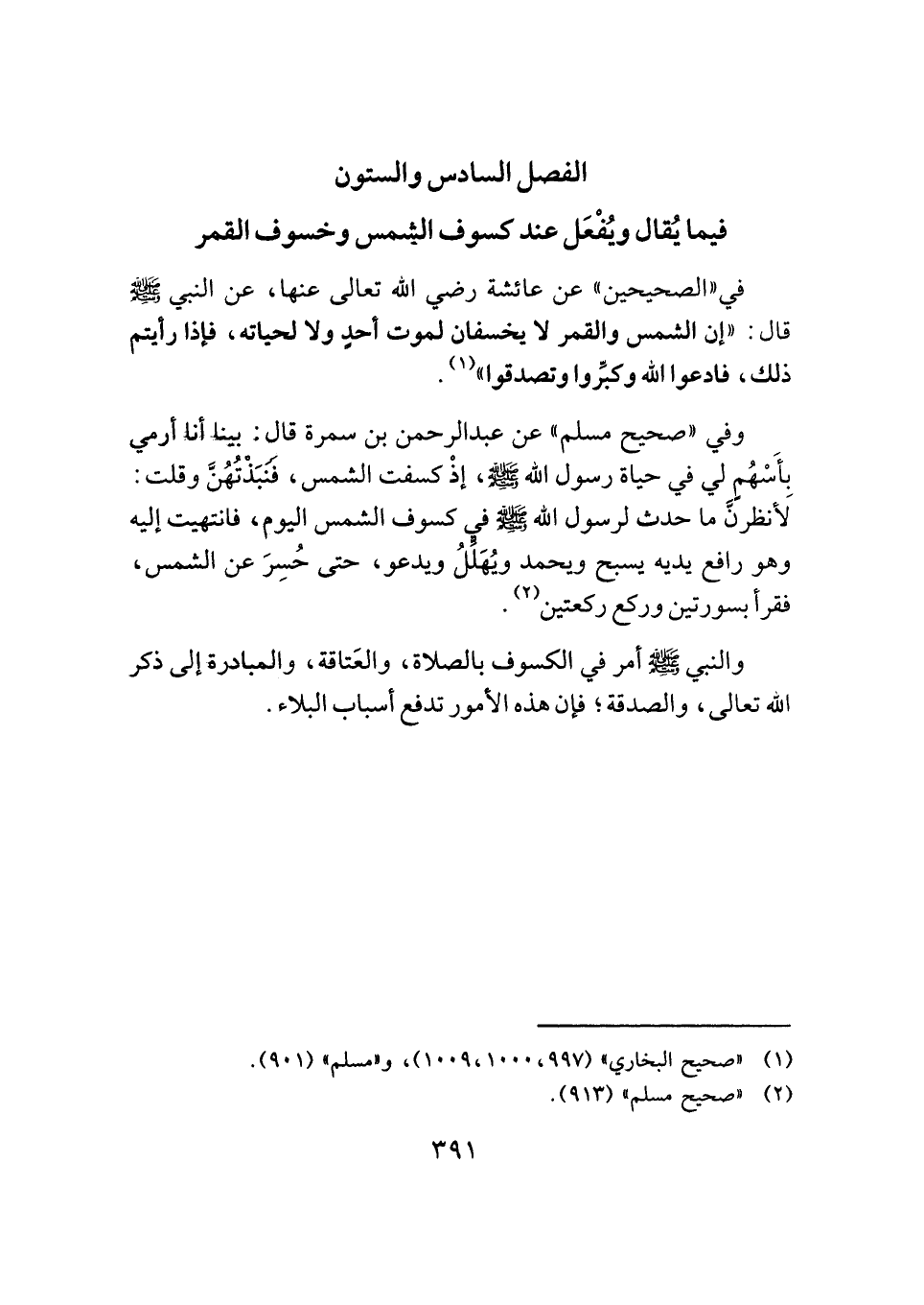 الفصل السادس والستون: فيما يُقال ويُفْعَل عند كسوف الشمس وخسوف القمر