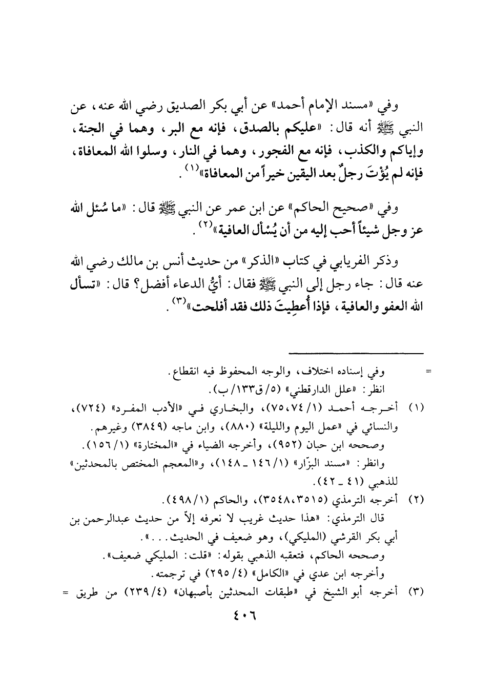 (¬١) أخرجه أحمد (١/ ٧٤، ٧٥)، والبخاري في "الأدب المفرد" (٧٢٤)، والنسائي في "عمل اليوم والليلة" (٨٨٠)، وابن ماجه (٣٨٤٩) وغيرهم.
