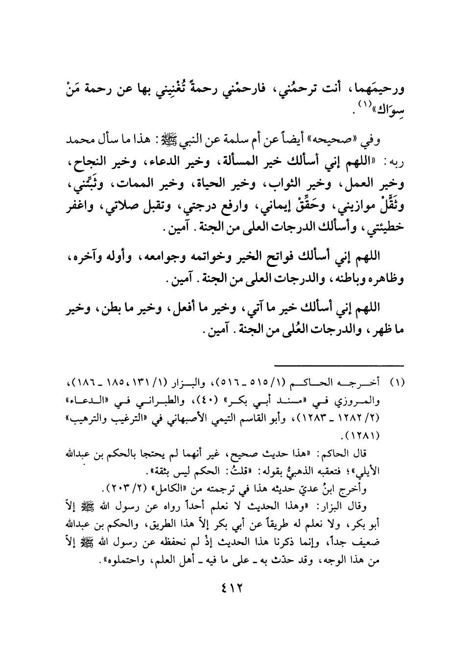 ورحيمَهما، أنت ترحمُني، فارحمْني رحمةً تُغْنِيني بها عن رحمة مَنْ سِوَاك" (¬١) .
