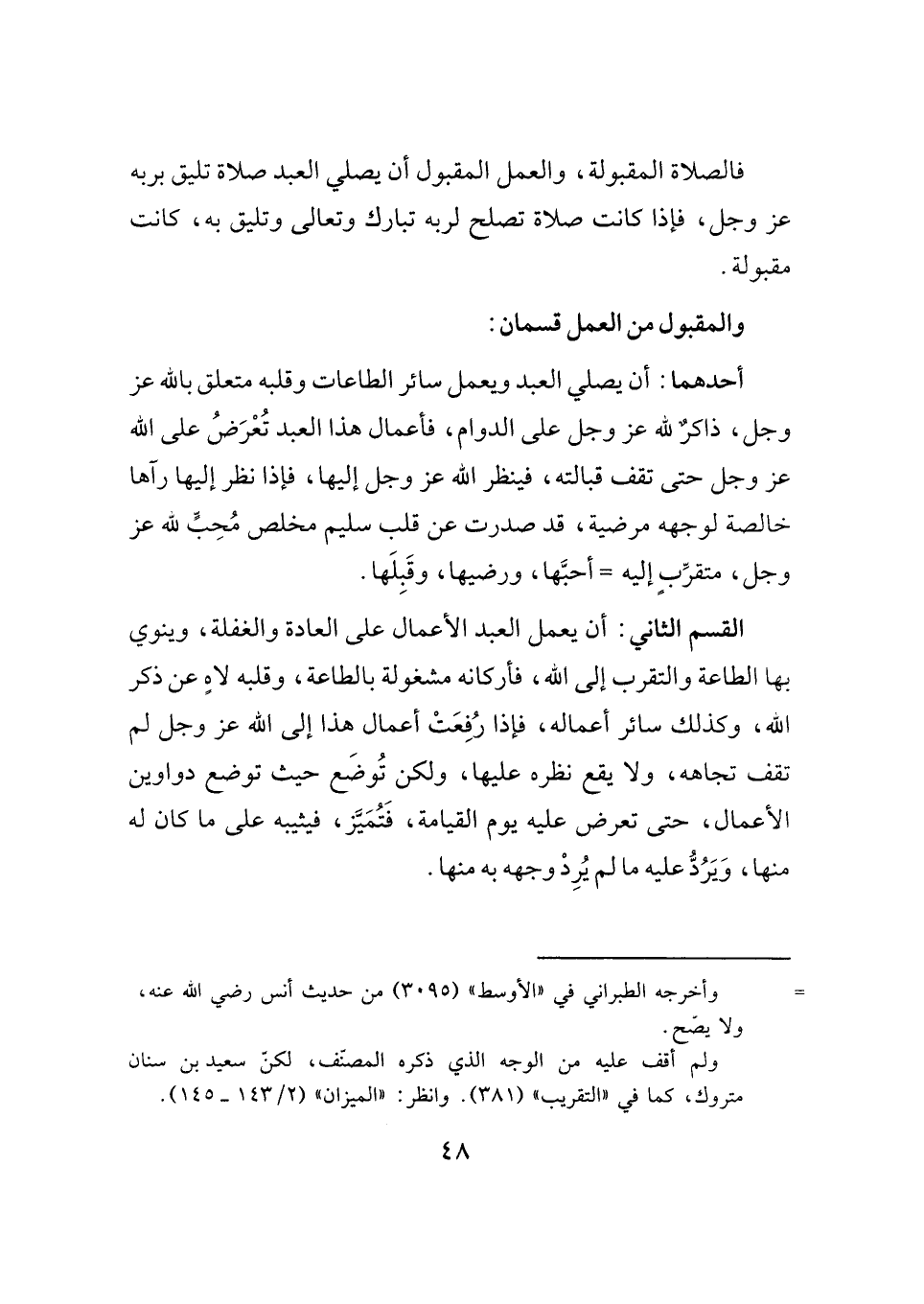 والمقبول من العمل قسمان: