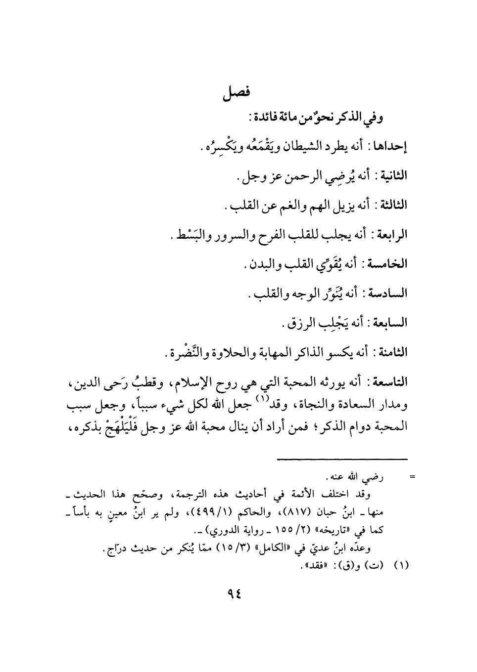 وفي الذكر نحوٌ من مائة فائدة: