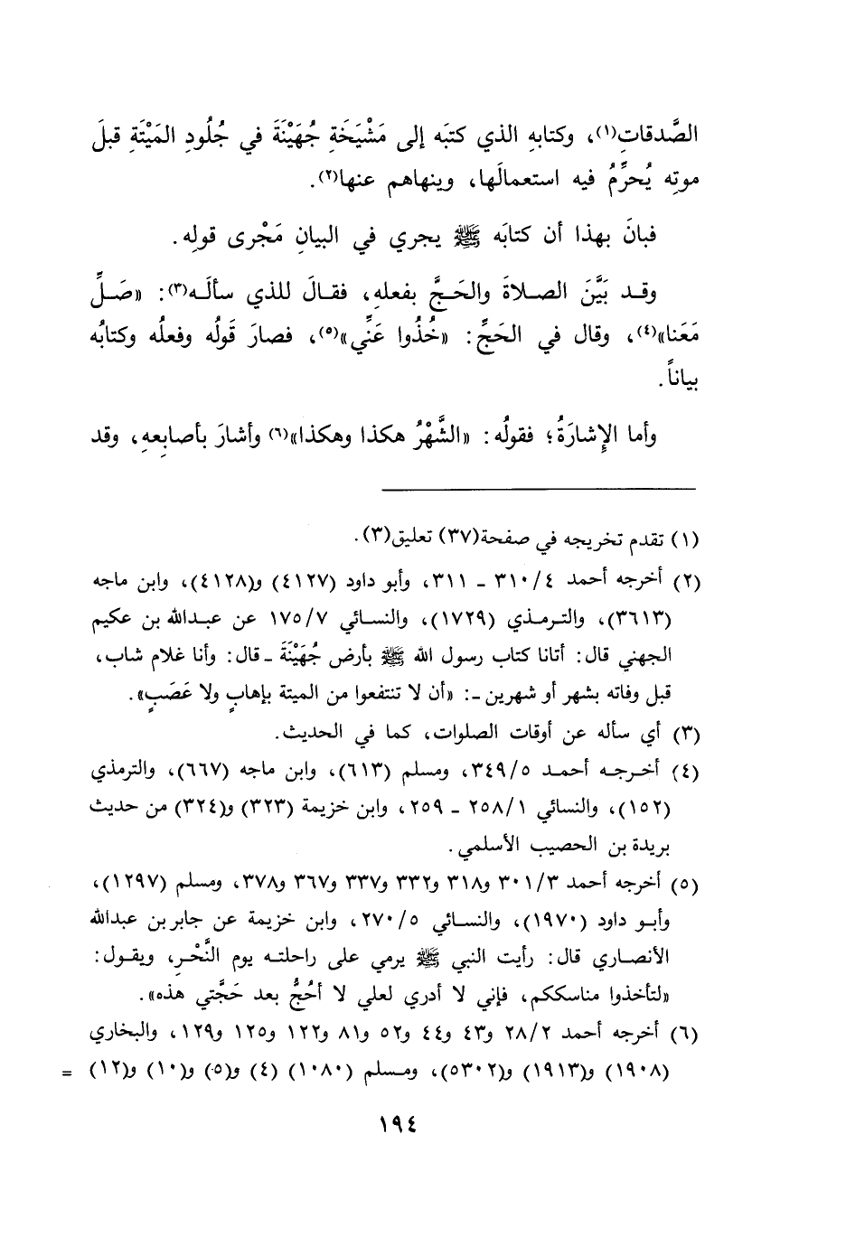فبانَ بهذا أن كتابَه - صلى الله عليه وسلم - يجري في البيانِ مَجْرى قولِه.